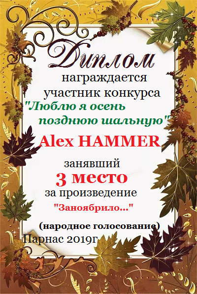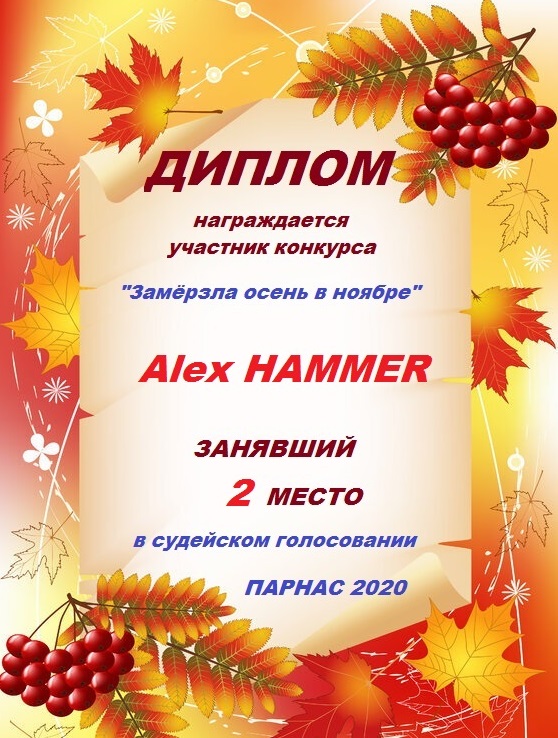 Второе место по итогам литературного конкурса «Замёрзла осень в ноябре», судейское голосование. Поздравляем с прекрасной победой!