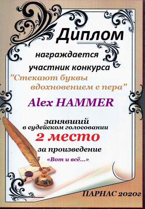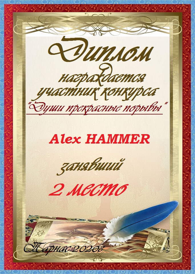 Второе место по итогам конкурса "Твой Стих, как Божий Дух, носился над толпой", судейское голосование. Поздравляем с прекрасной победой!