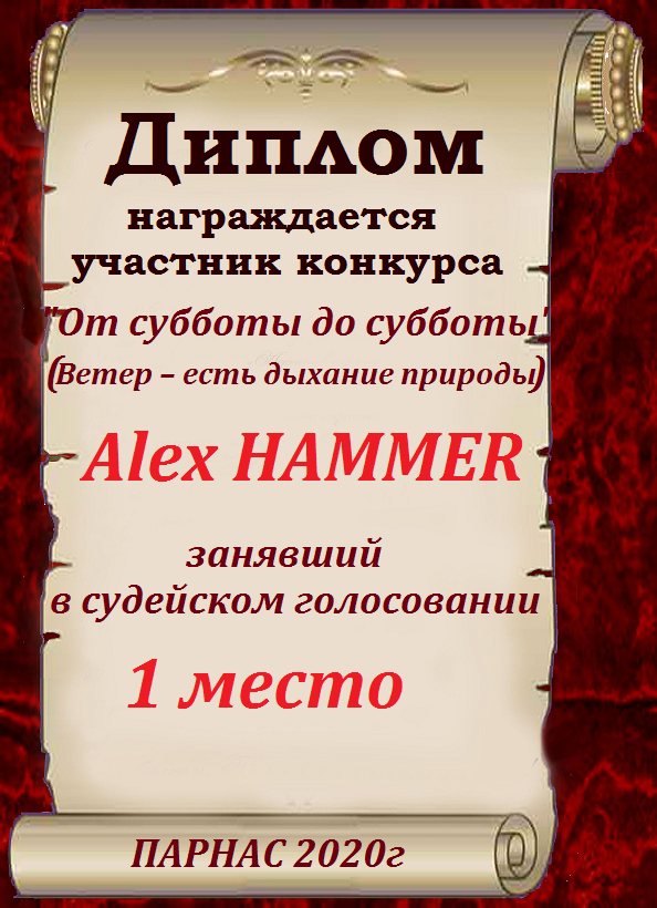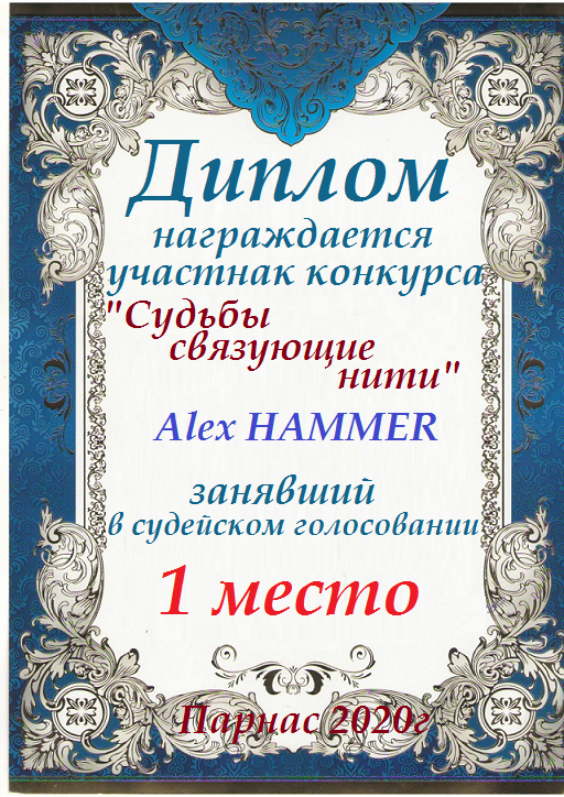 Первое место по итогам конкурса «Ветер снова мне шепчет о счастье ", по итогам судейского голосования. Поздравляем с прекрасной победой!