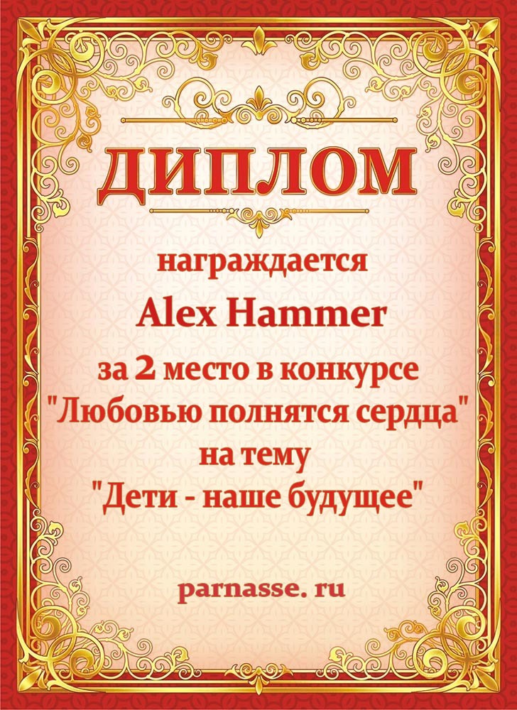 За 2 место в конкурсе "Любовью полнятся сердца" на тему "Дети - наше будущее"