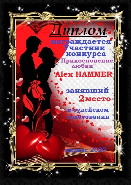 Первое место по итогам конкурса «Сладко-горький привкус поцелуя», судейское голосование. Поздравляем с прекрасной победой!