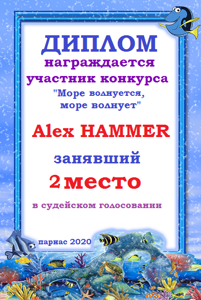Второе место по итогам конкурса " Мне шепчет ласково волна", судейское голосование. Поздравляем с прекрасной победой!