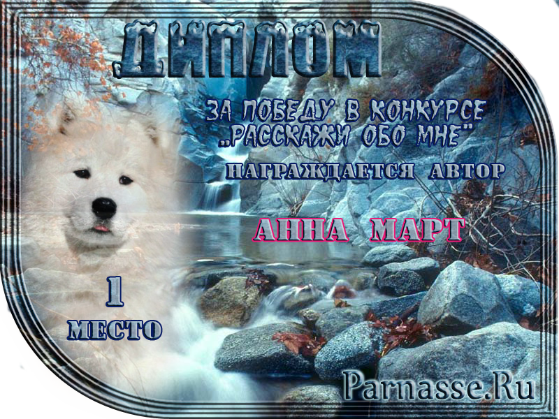 ДИПЛОМ ЗА ПЕРВОЕ МЕСТО В КОНКУРСЕ "РАССКАЖИ ОБО МНЕ"