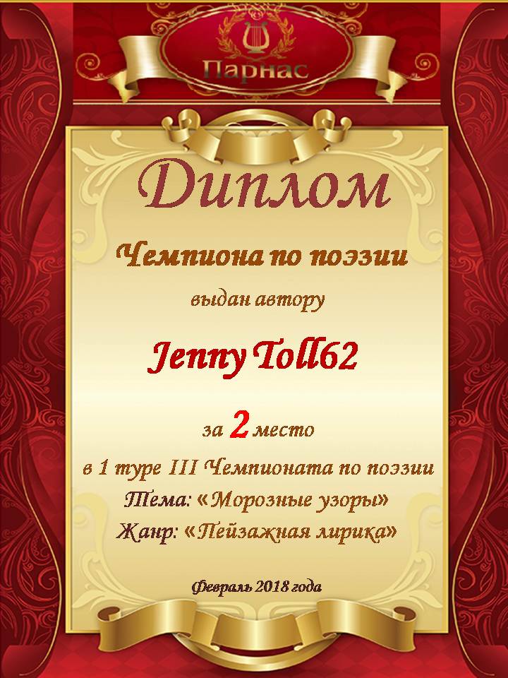 Победитель по итогам Второго Поэтического Турнира. Поздравляем!