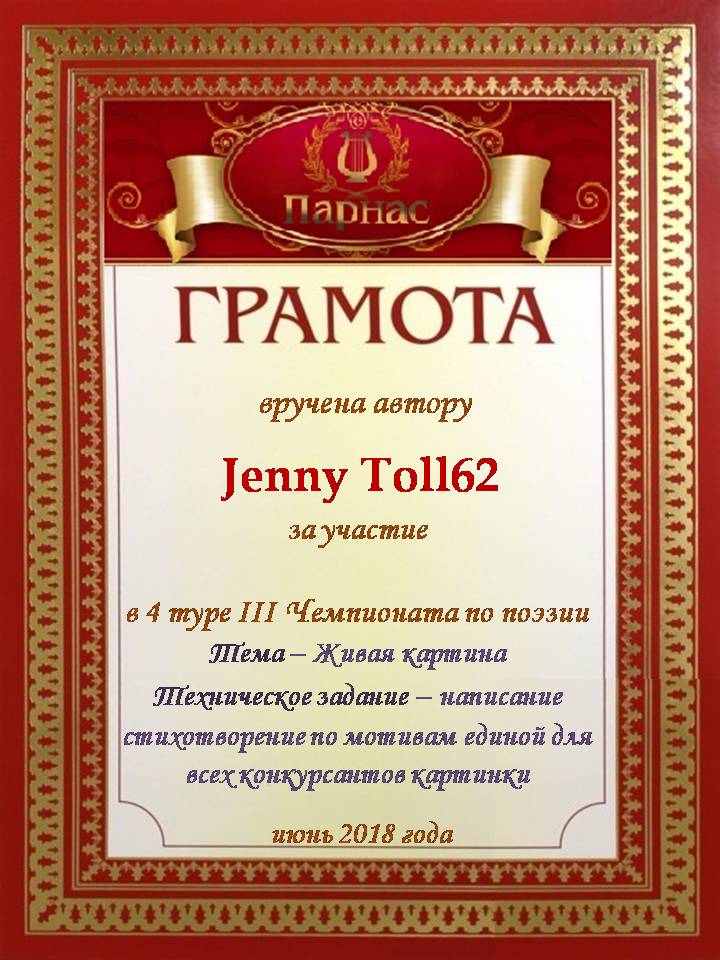 За 4 место в 6 туре II Чемпионата поэзии Парнаса, тема "Малая родина", жанр - деревенская лирика