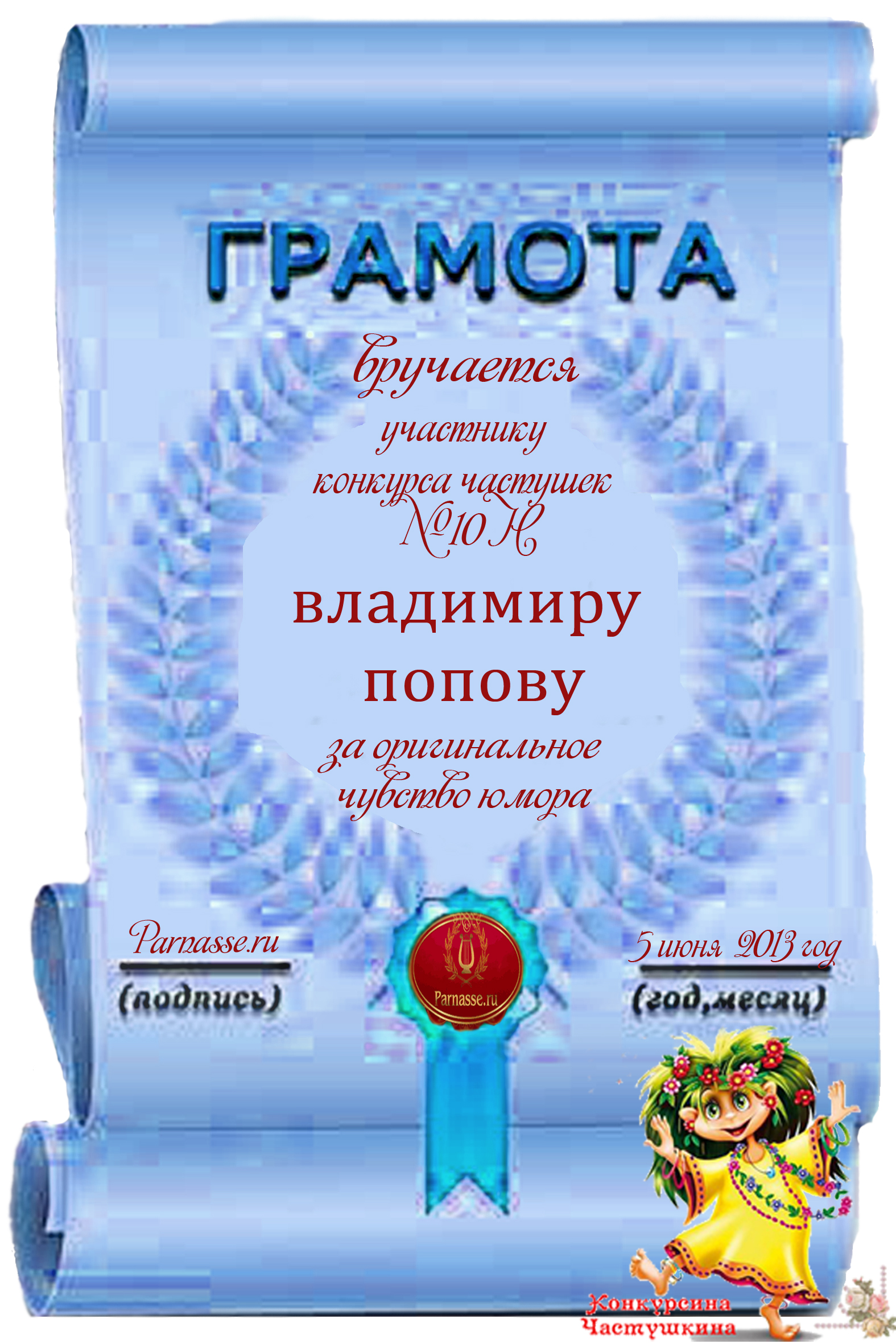 Похвальная грамота за 5 место в конкурсе лимериков № 51+ (23.03.2014 г.)