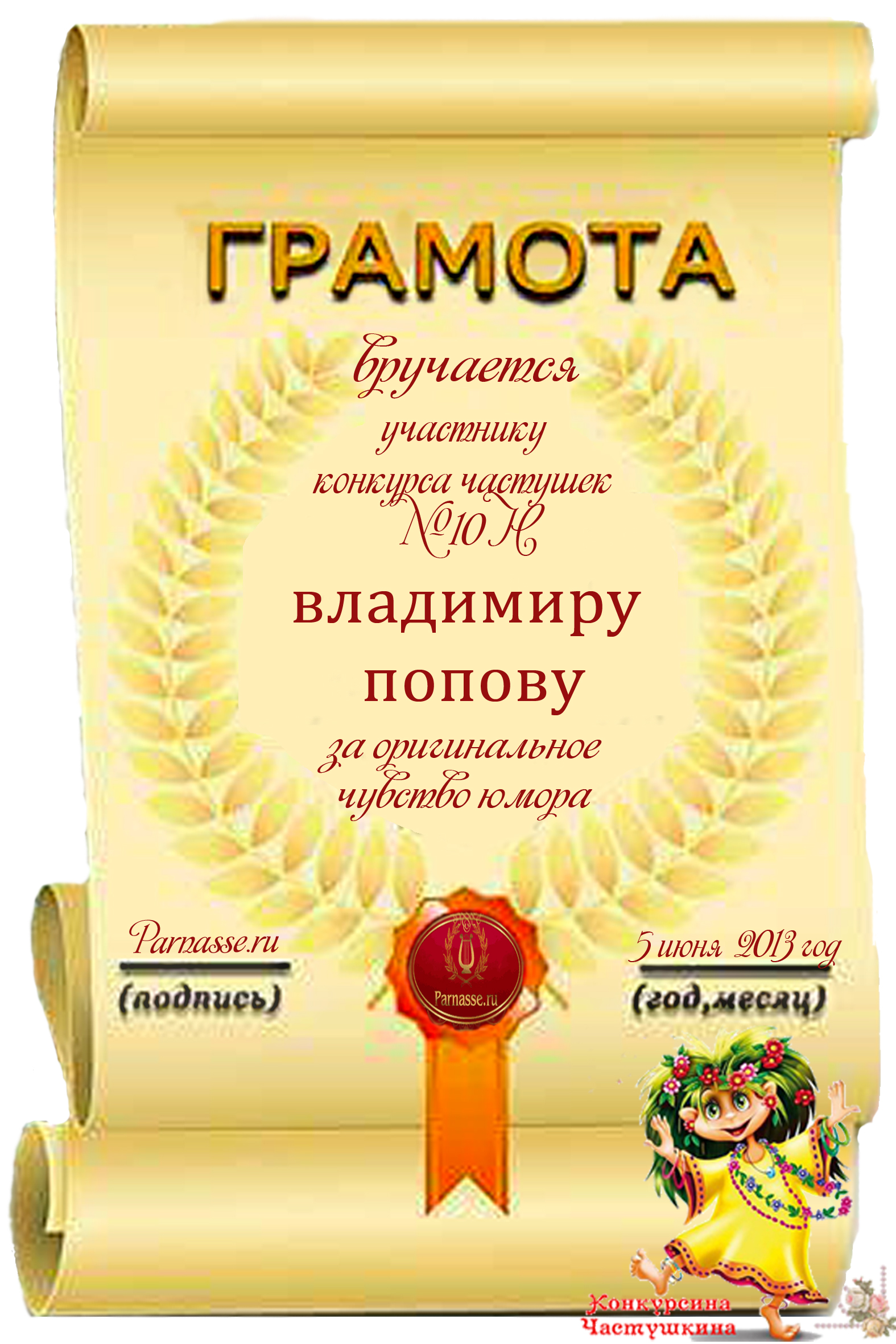 ![]() Медаль за ПЕРВОЕ место в седьмом конкурсе Частушек!