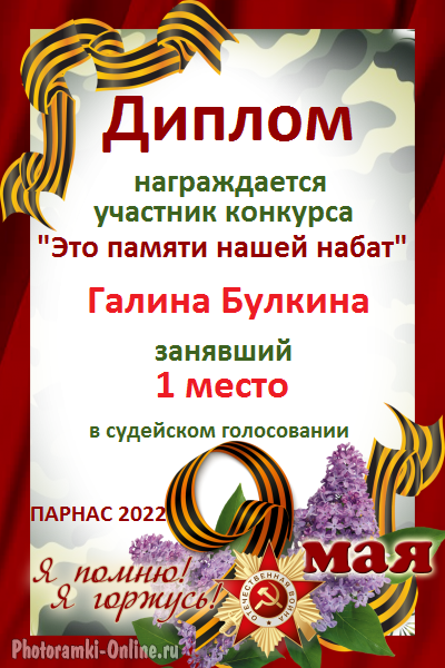 Первое место в судейском голосовании по итогам конкурса "Это памяти нашей набат"