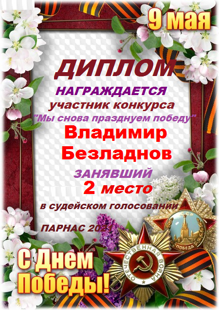 Второе место в судейском голосовании по итогам конкурса "Мы снова празднуем победу"