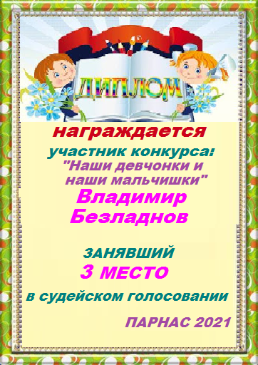 Третье место в судейском голосовании по итогам конкурса «Наши девчонки и наши мальчишки»