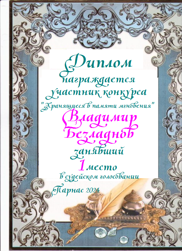 Первое место в судейском голосовании по итогам конкурса "Хранящиеся в памяти мгновения"
