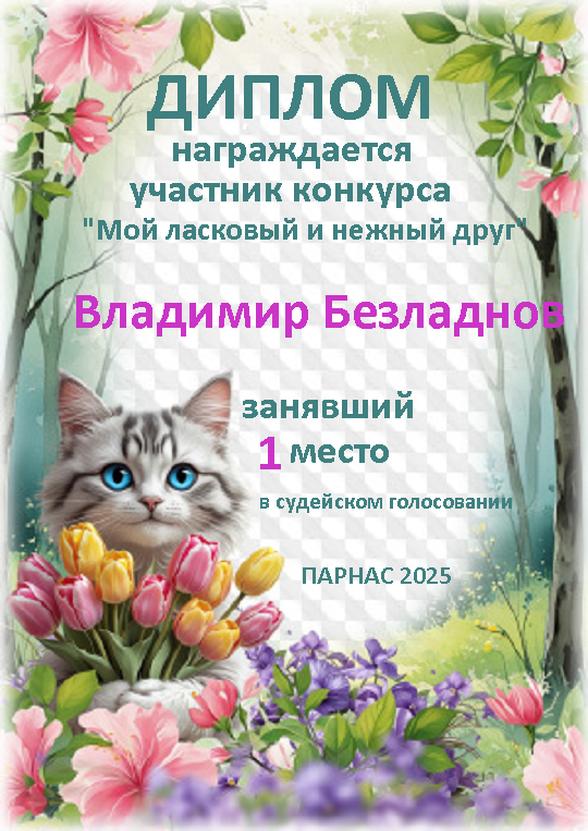 Первое место по итогам конкурса "Мой нежный и ласковый друг"