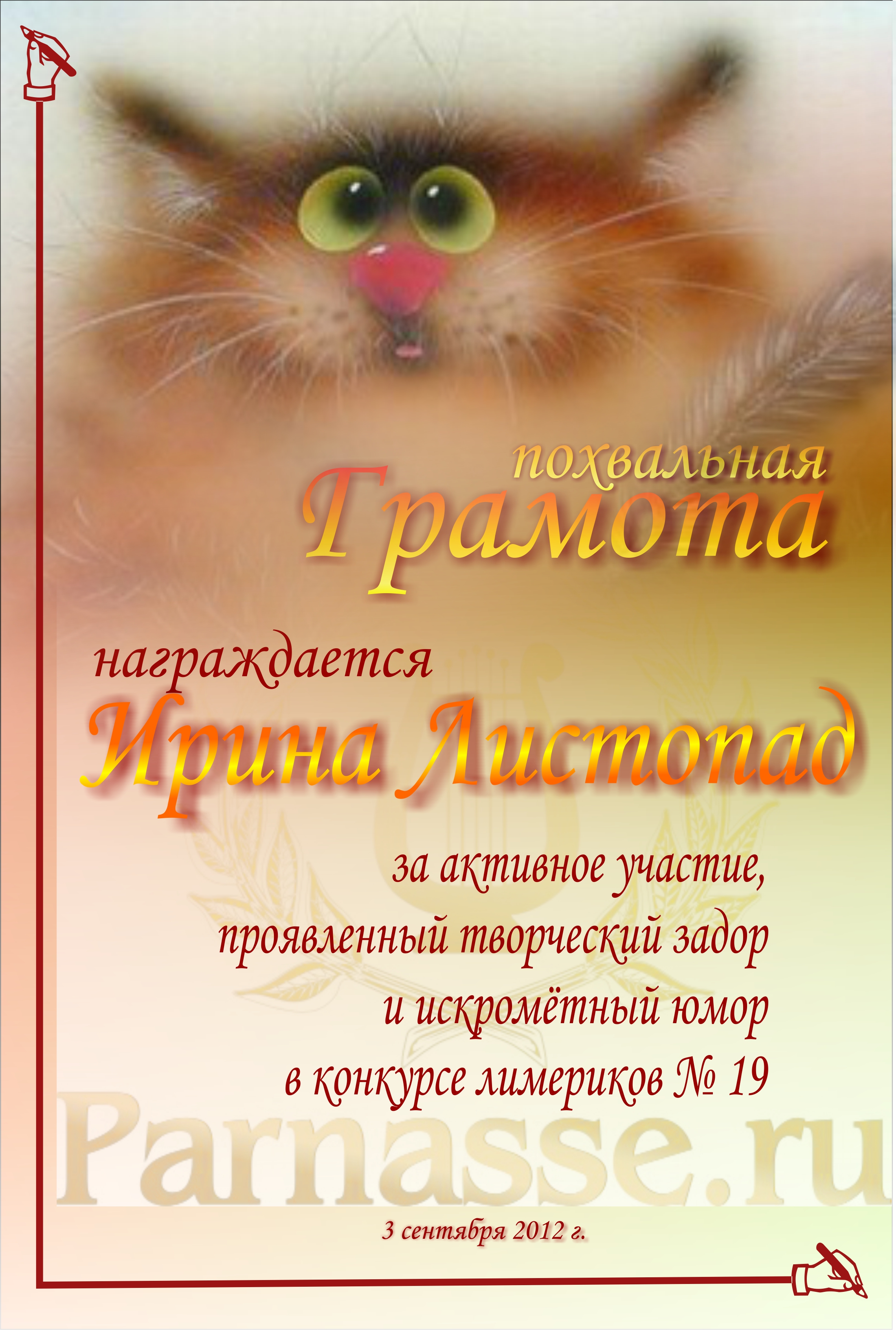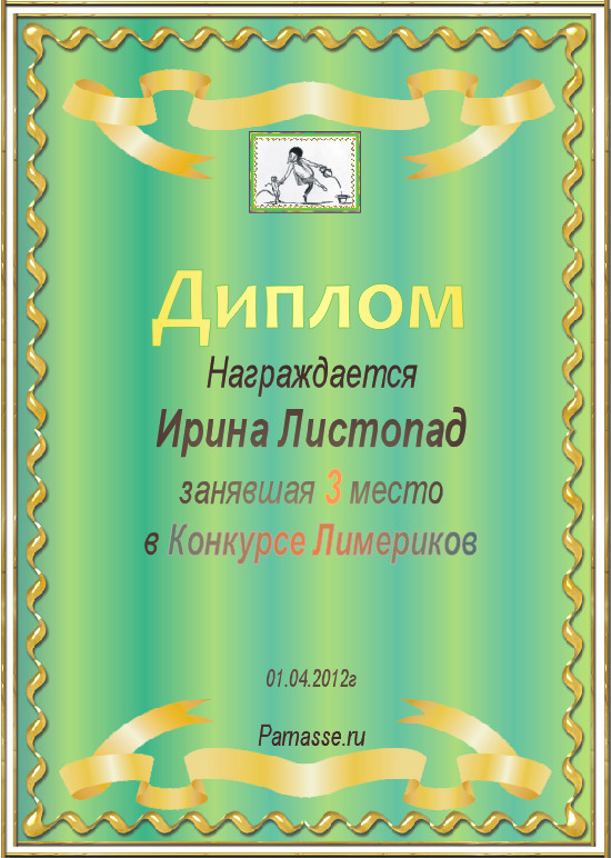 Похвальная грамота за участие в конкурсе лимериков № 19 (03.09.2012г.)