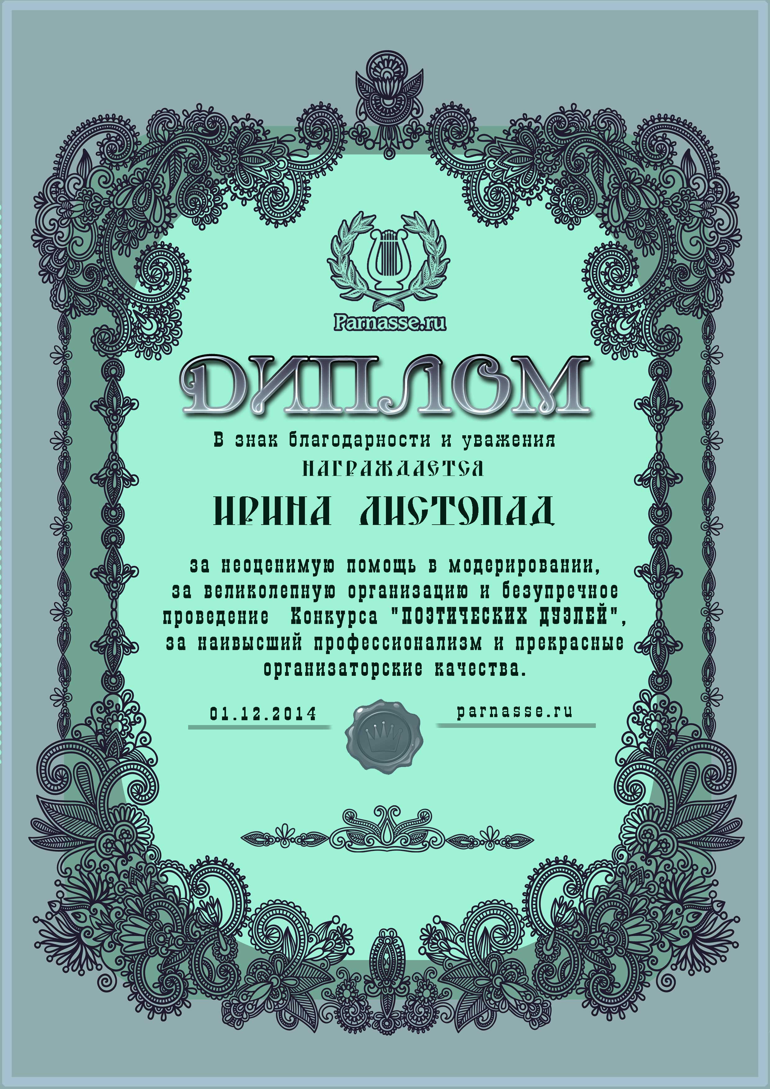 За профессиональное судейство 14го конкурса Поэтических дуэлей