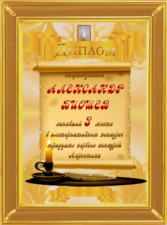 За неугасающую и неисчерпаемую творческую активность, постоянный контакт с Музой и признание сообществом "Парнасцев".От всей души желаем Вам, Александр, здоровья, любви, успехов, благополучия, удачи и творческого вдохновения!