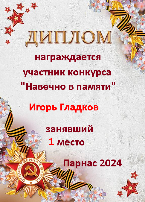 Первое место по решению Администрации и Главного судьи конкурса "Навечно в памяти"
