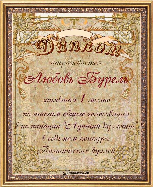 Диплом за 3-е место в номинации "Лучшая дуэль" по итогам общего голосования в седьмом конкурсе поэтических дуэлей