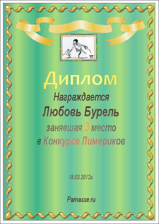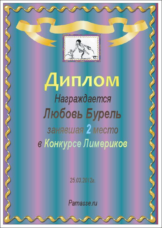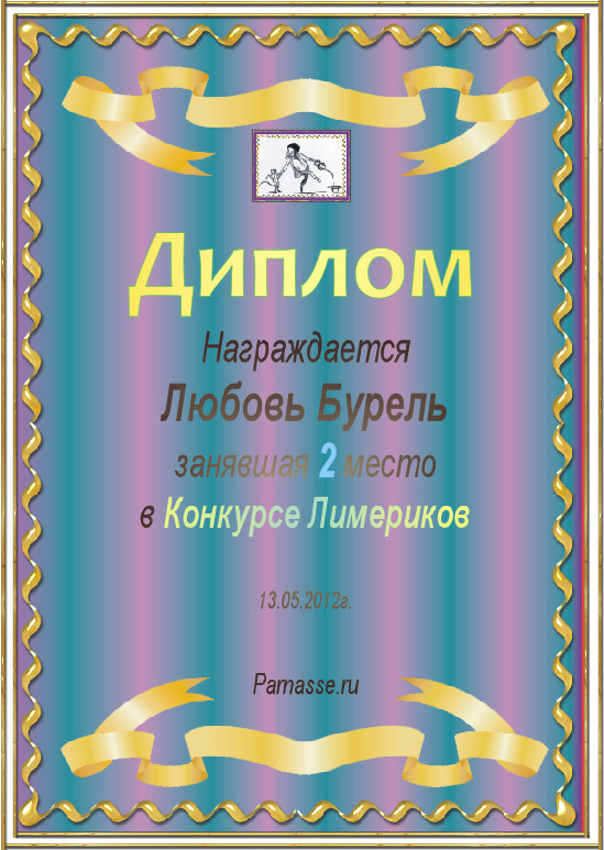 Диплом за 2 место в конкурсе лимериков №11 (13.05.2012.)