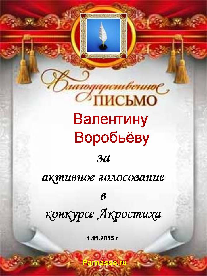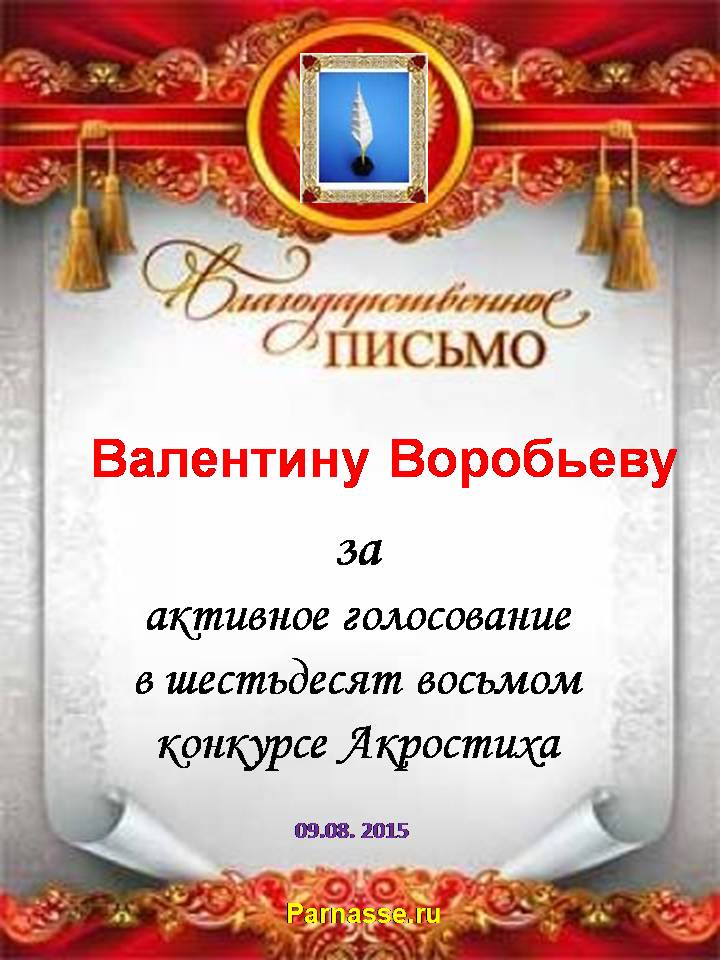 Благодарность за активное голосование в конкурсе Акростиха!СПАСИБО БОЛЬШОЕ!