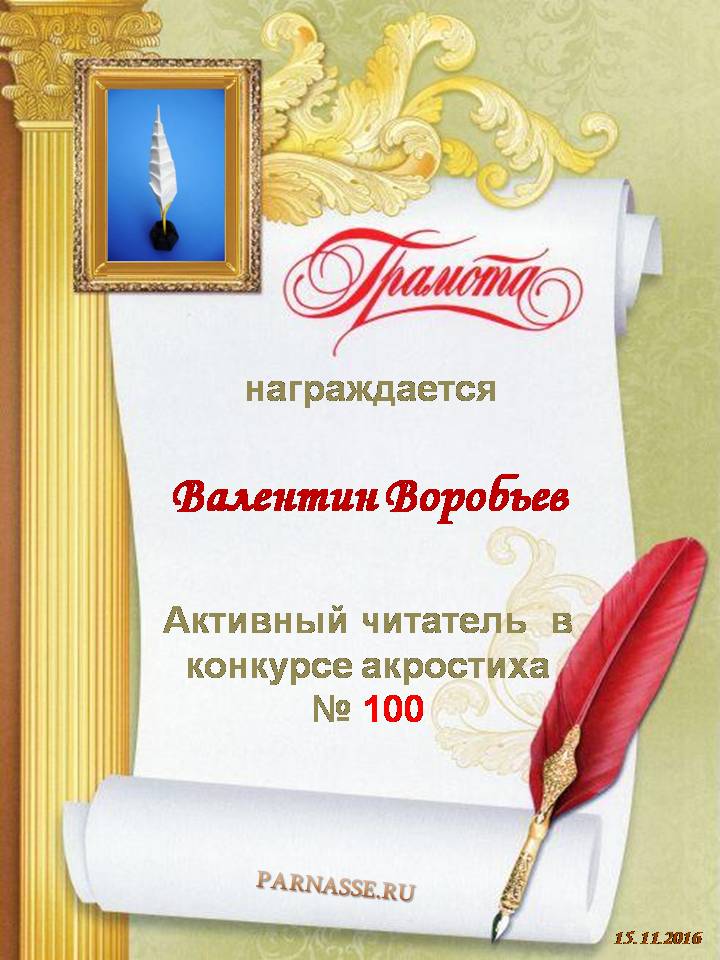 ![]() Медаль постоянному читателю в конкурсах Акростиха