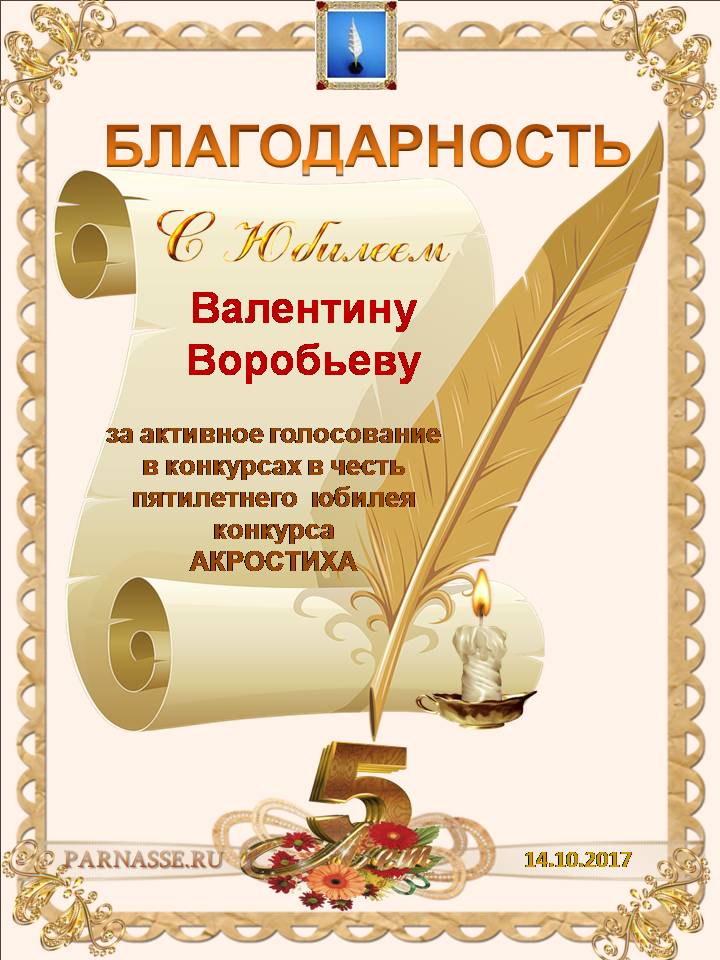 Благодарность за активное голосование в конкурсах Акростиха в связи с пятилетним юбилеем конкурса Акростиха!