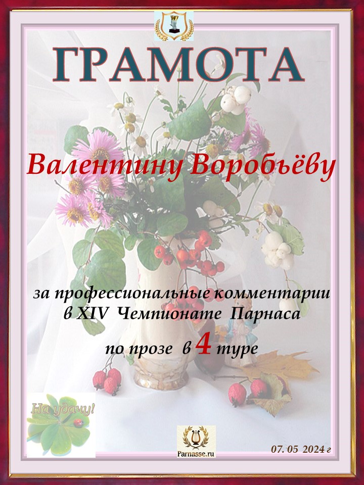 Спасибо за профессиональные комментарии в 4 туре XIV Чемпионата Парнаса по прозе!