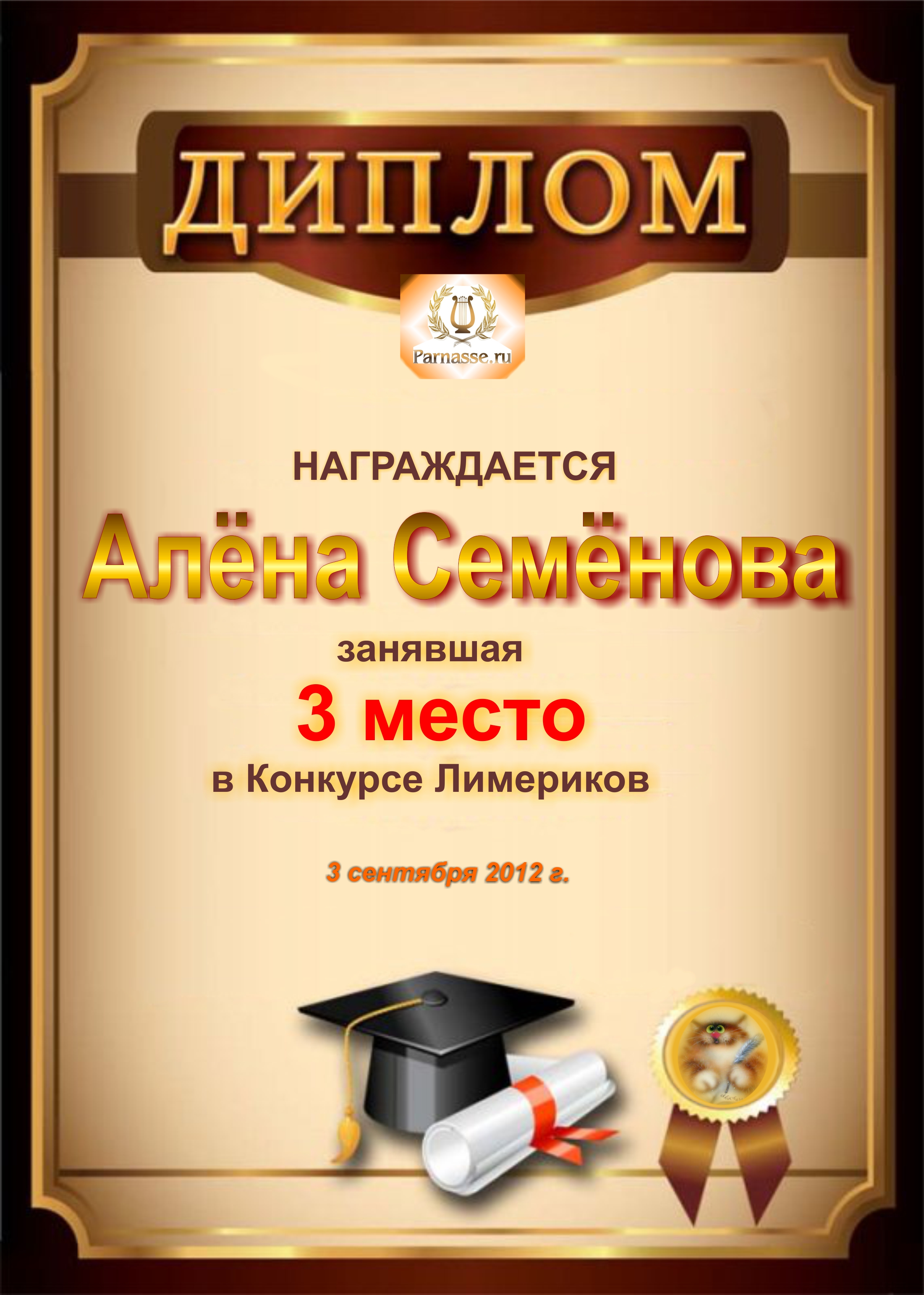 ![]() Бронзовый кубок «Гордость Парнаса»!
