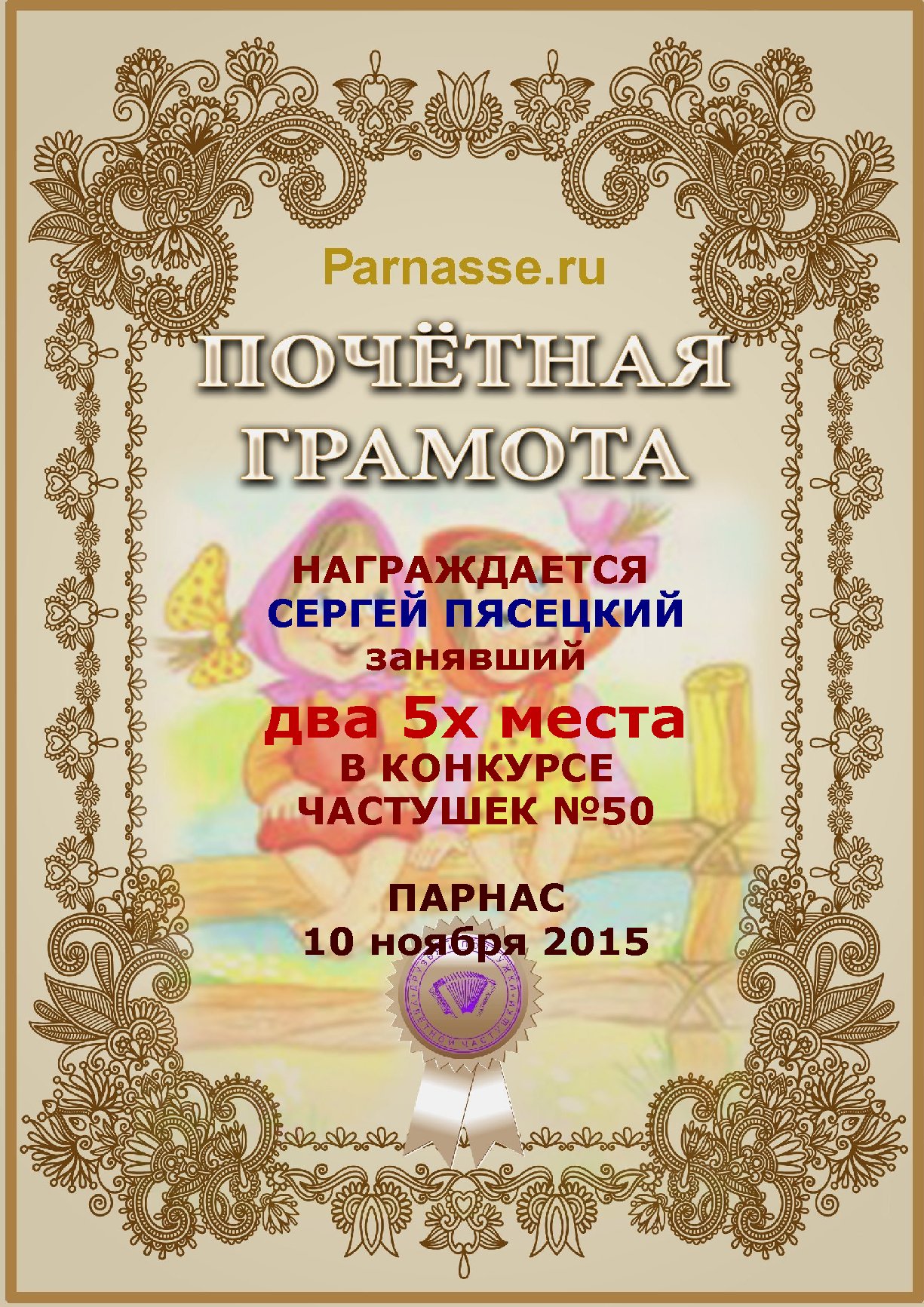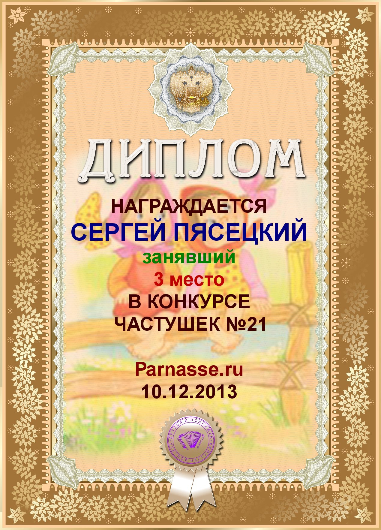 за 3е место в конкурсе частушек №45