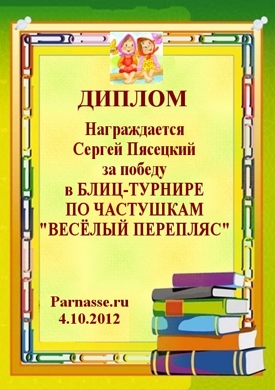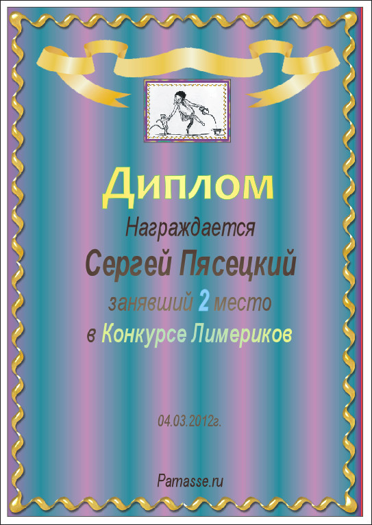 Почётная грамота за участие в конкурсе лимериков № 19 (03.09.2012г.)