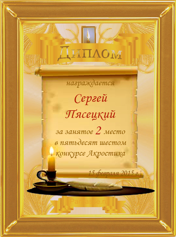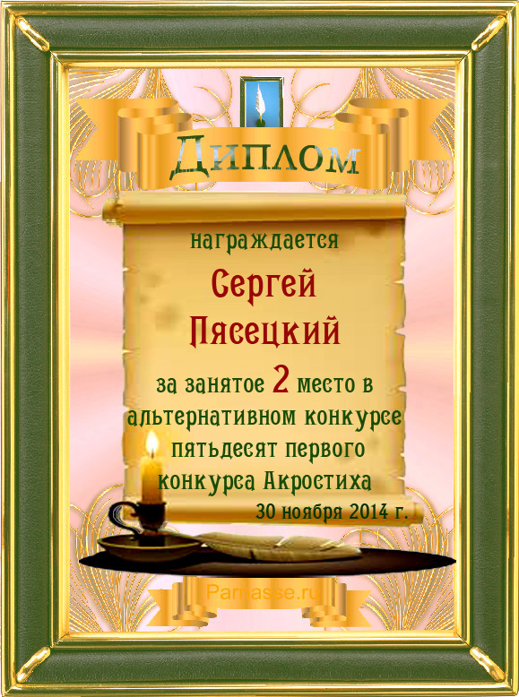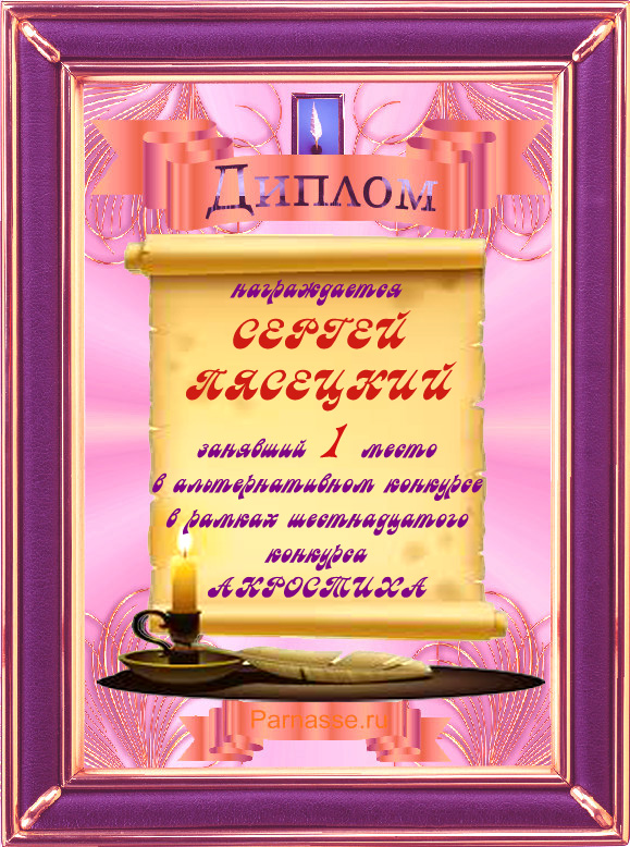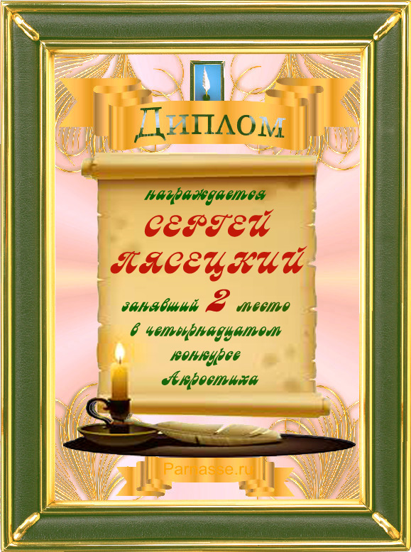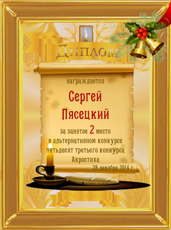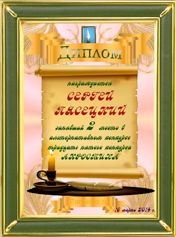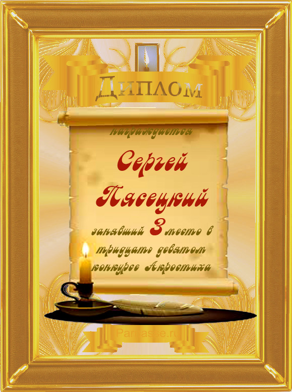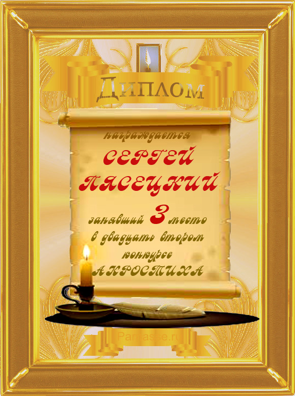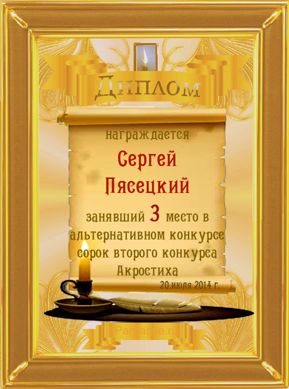 Диплом за 3 место во 2 годовом конкурсе Акростиха по итогам судейского голосования (Альтернатива)! ПОЗДРАВЛЯЮ!