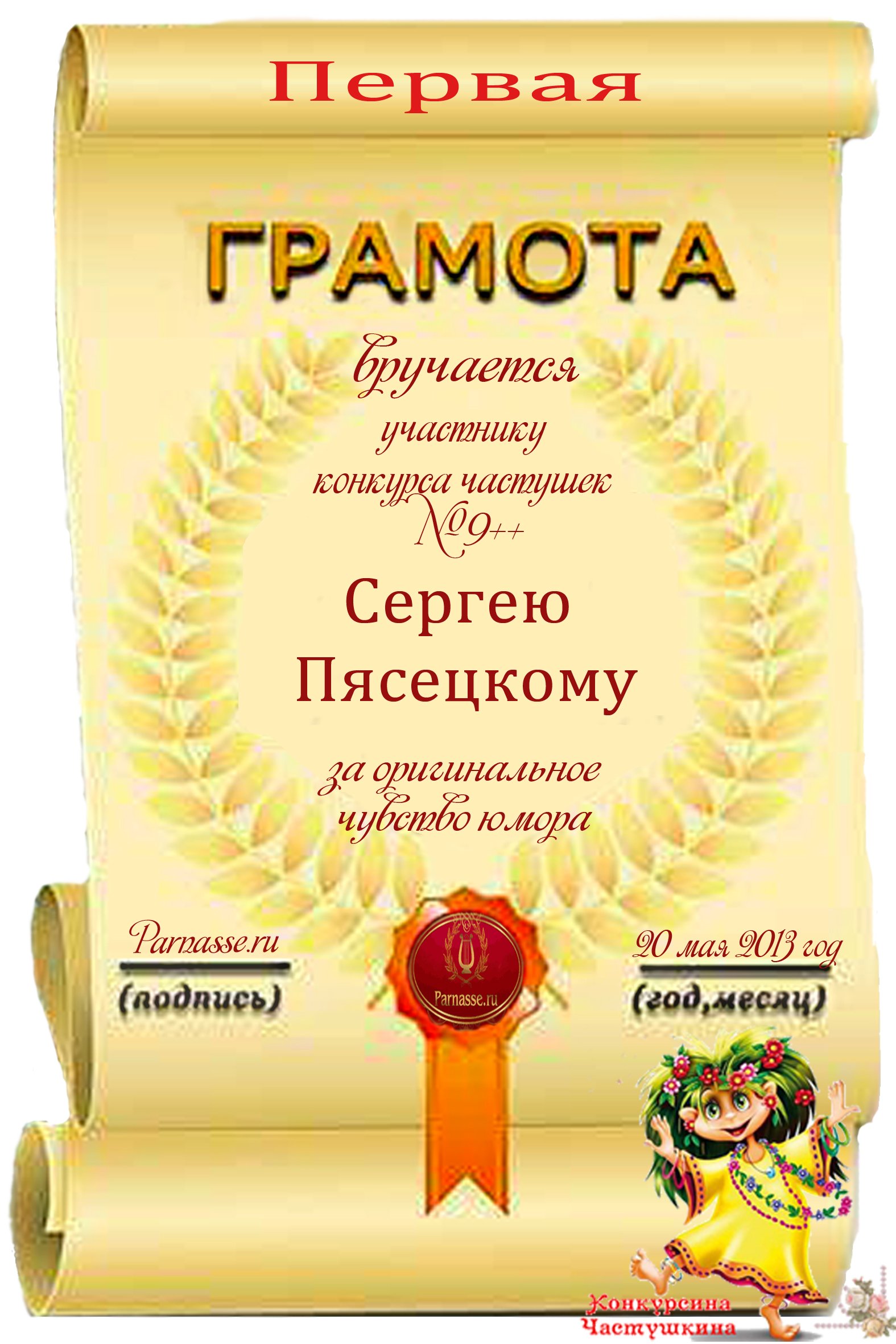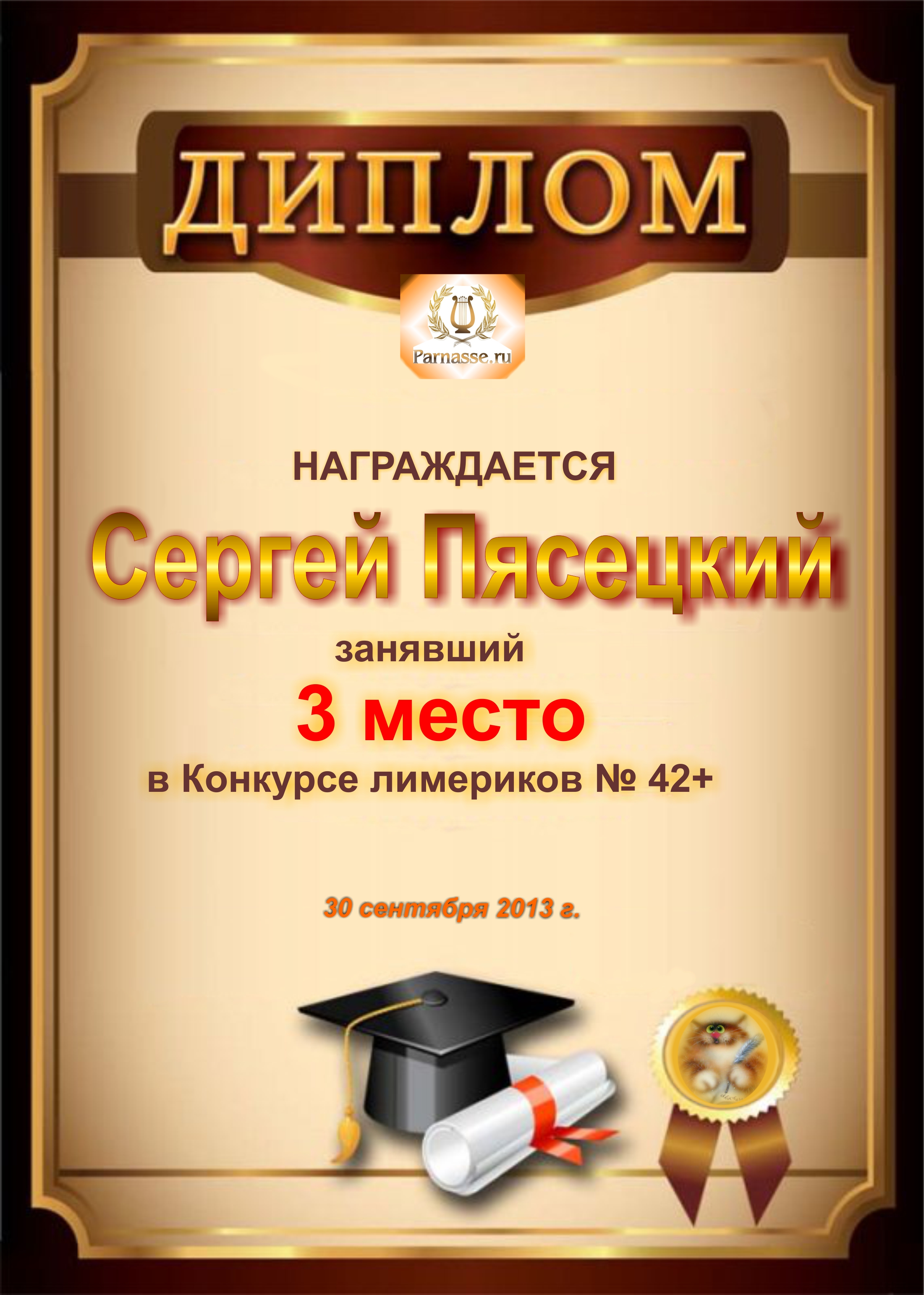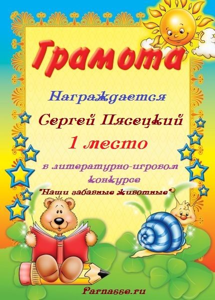Похвальная грамота за 5 место в конкурсе лимериков № 41+ (9.09.2013 г.)