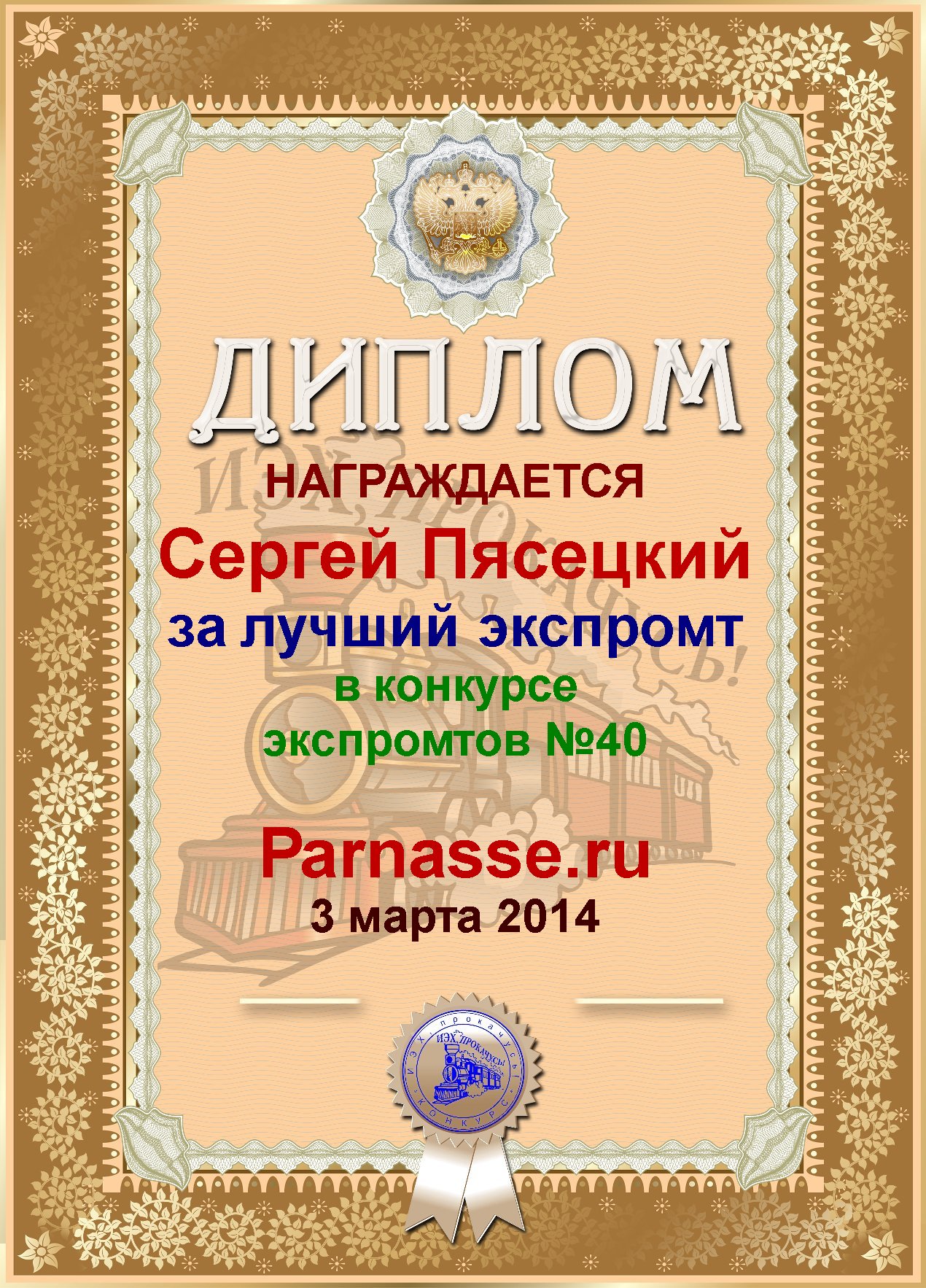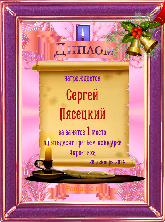 Диплом победителю в конкурсах Акростиха в честь пятилетия конкурса Акростиха!