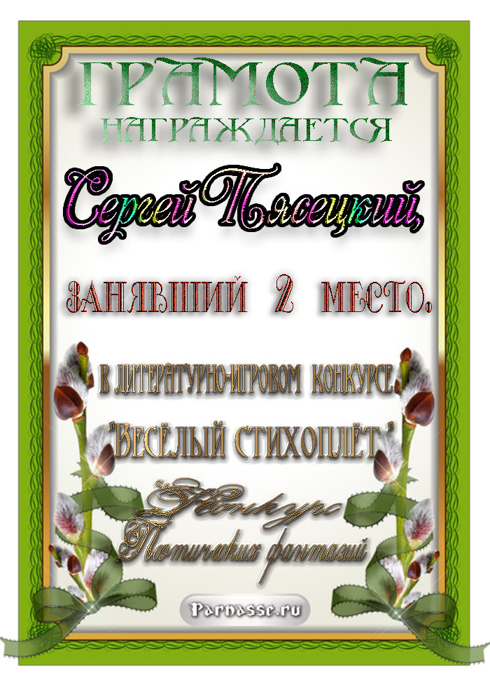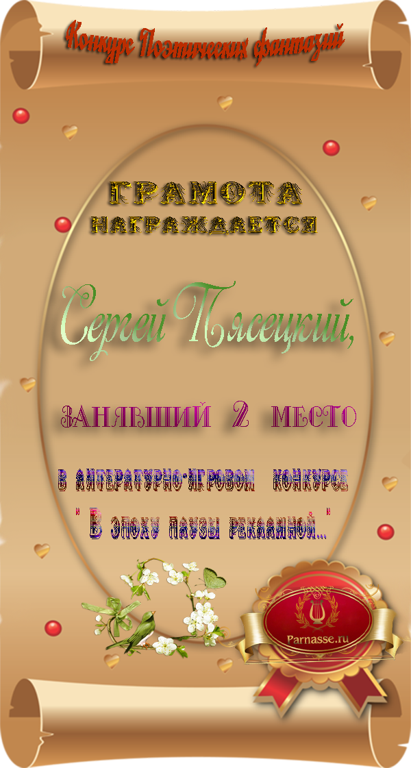 ![]() медаль за 2 место в конкурсе Поэтических фантази