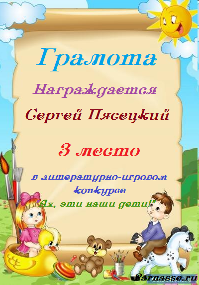 Грамота за творческие успехи в литературно-игровом конкурсе "В гостях у буриме".ПОЗДРАВЛЯЕМ!
