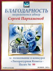 ![]() Медаль читателя в конкурсе "ЛитКомета - Полёт № 99"