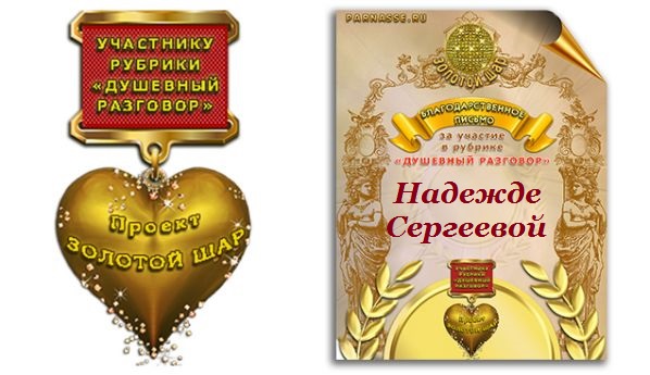 За компетентное, квалифицированное, справедливое судейство прозаической номинации "Очей очарование" ЛитКонкурса "Золотом рассыпался сентябрь". Огромное СПАСИБО, Уважаемая Надежда!