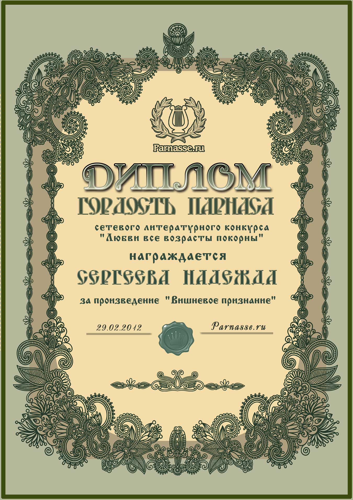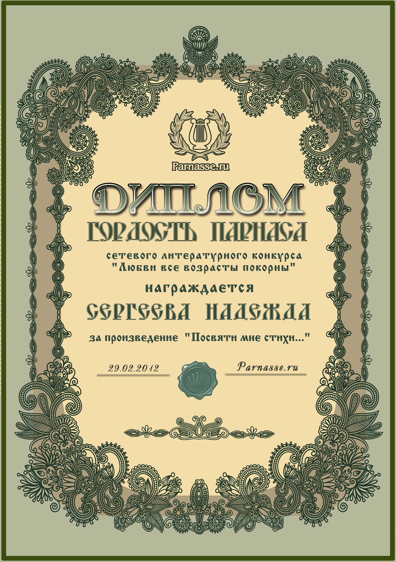 Диплом судьи сетевого литературного конкурса "Любви все возрасты покорны"