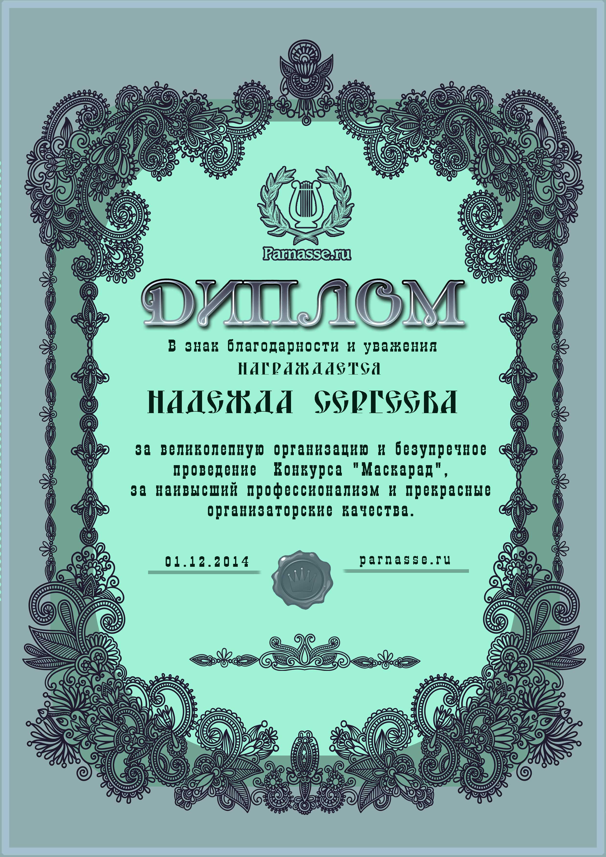 Уважаемая Надежда!Спасибо Вам большое за высокопрофессиональное, объективное судейство конкурсов на Парнасе!