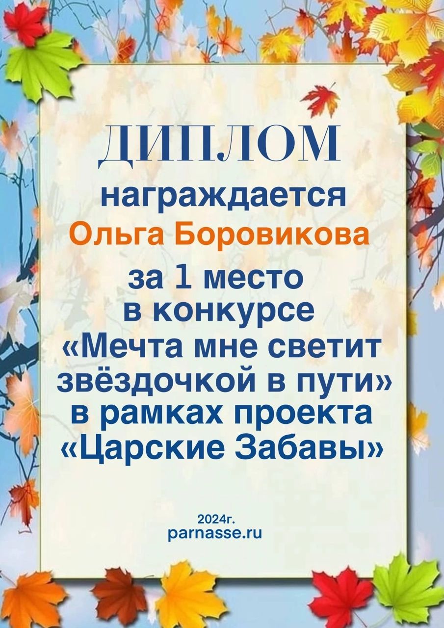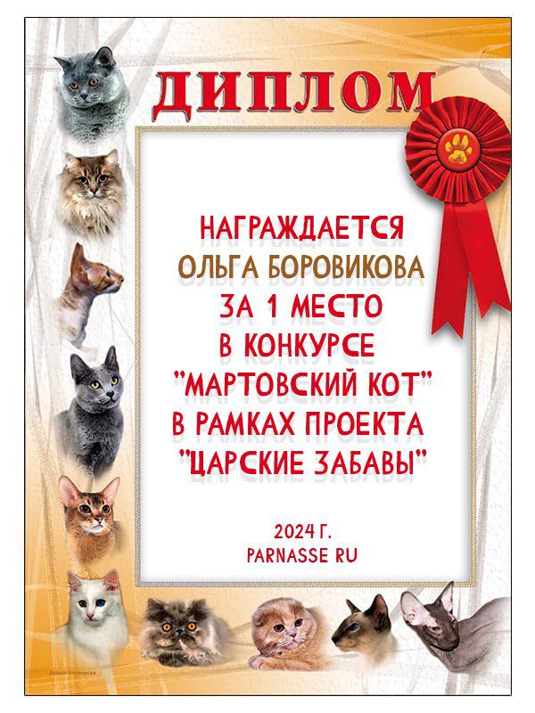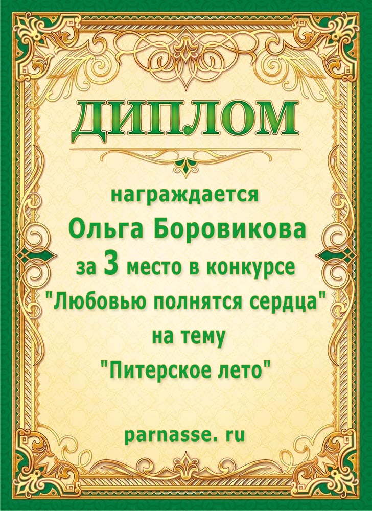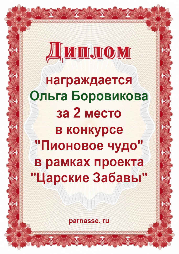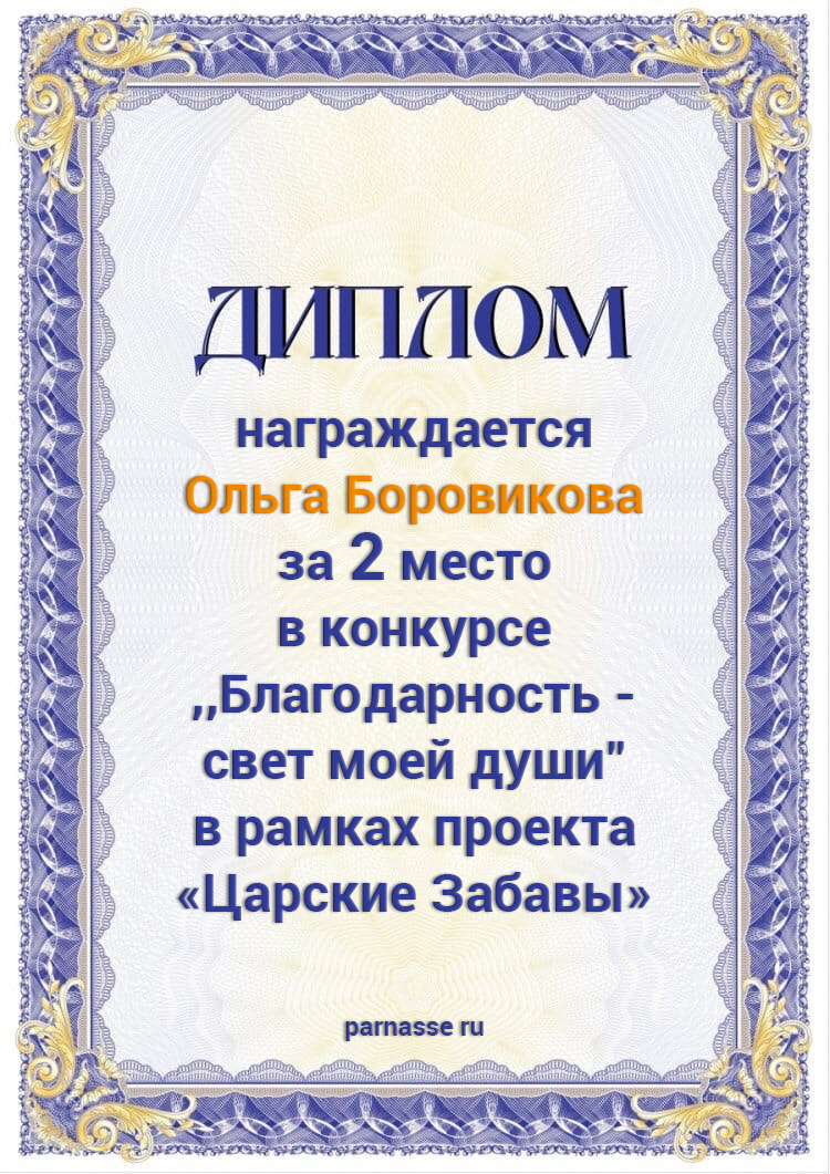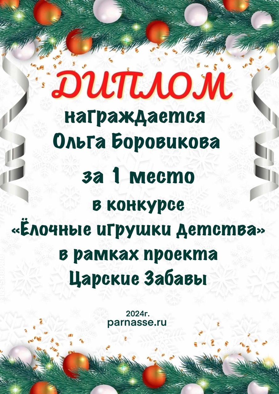 Диплом за 1 место в праздничном конкурсе "Поздравим Парнас с трёхлетием вместе!"