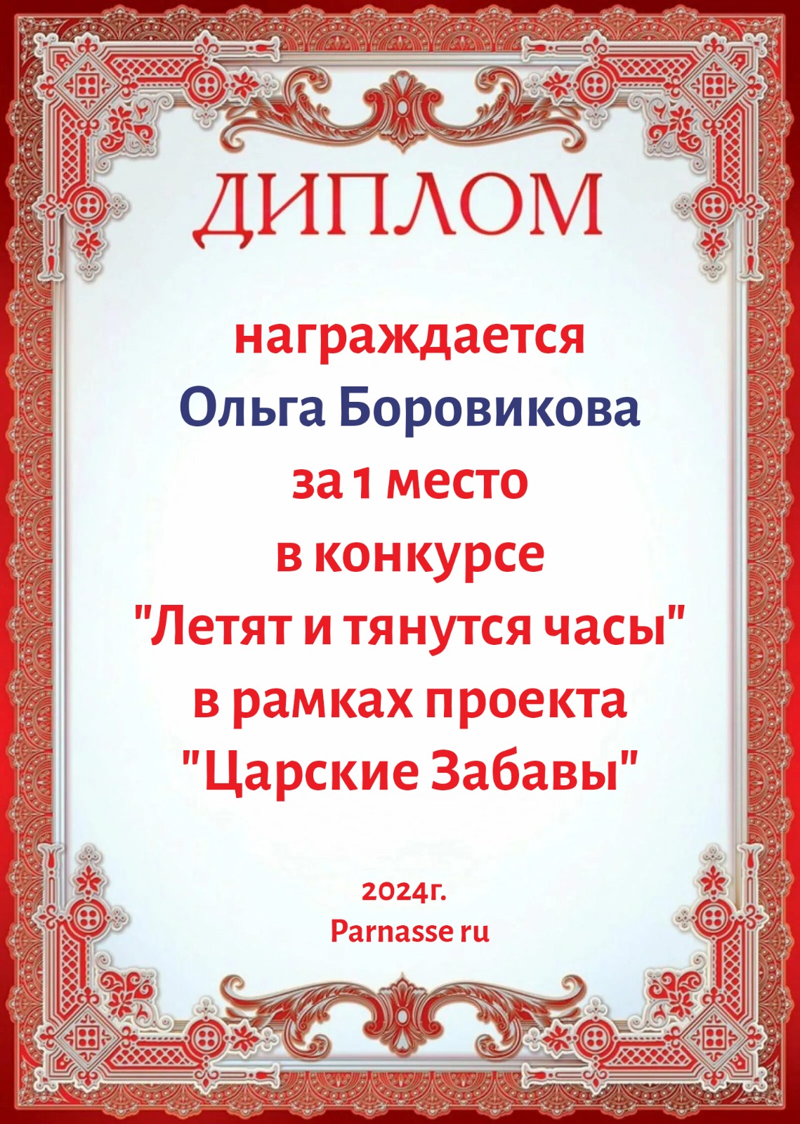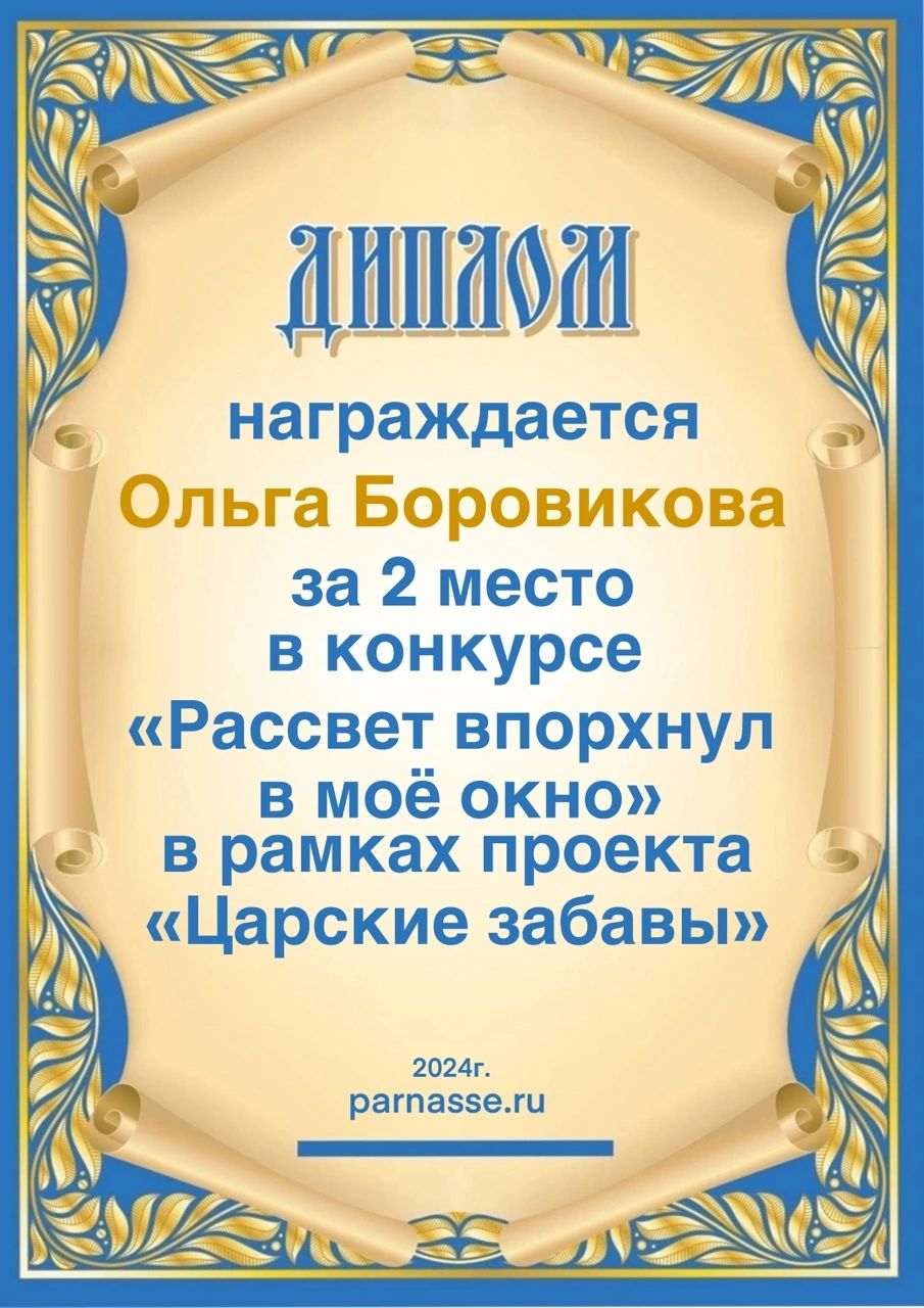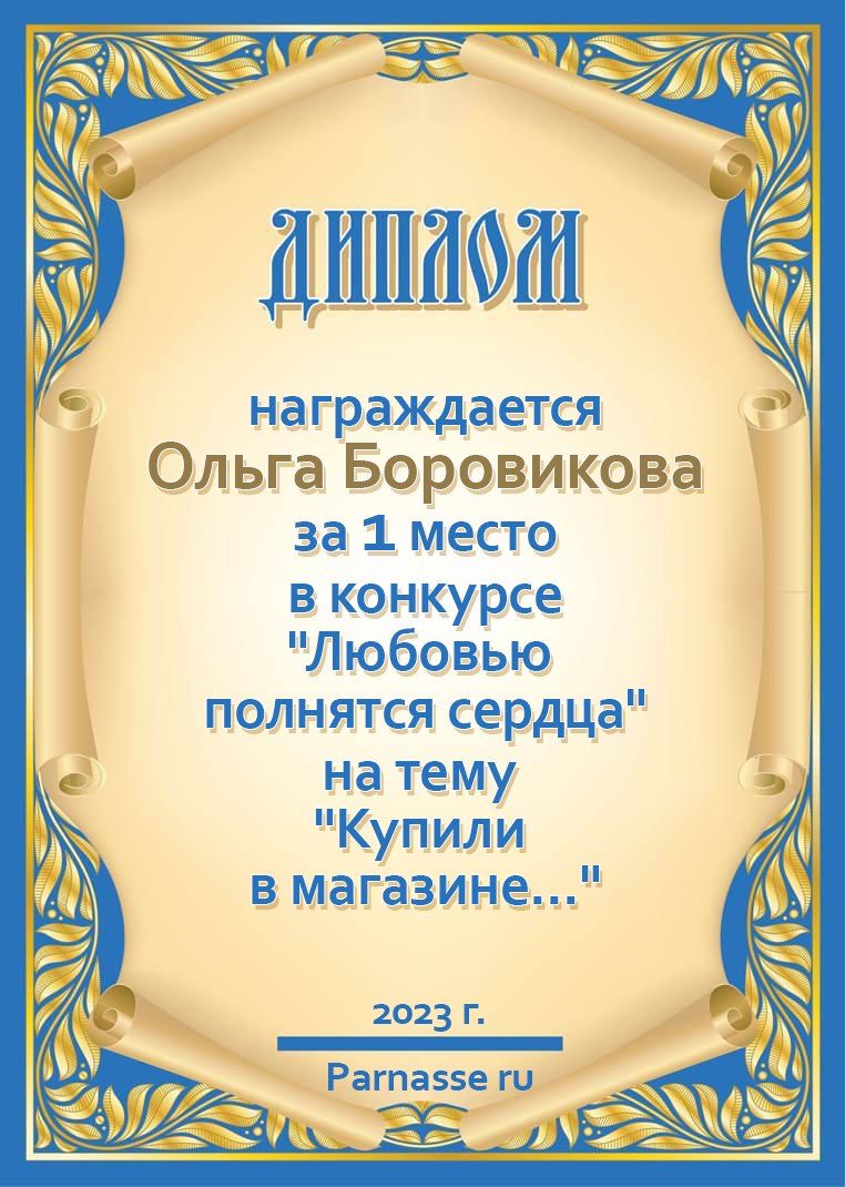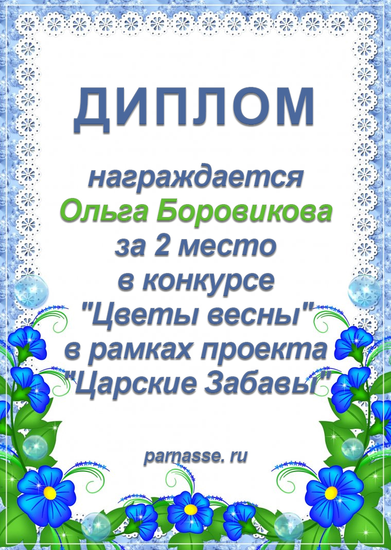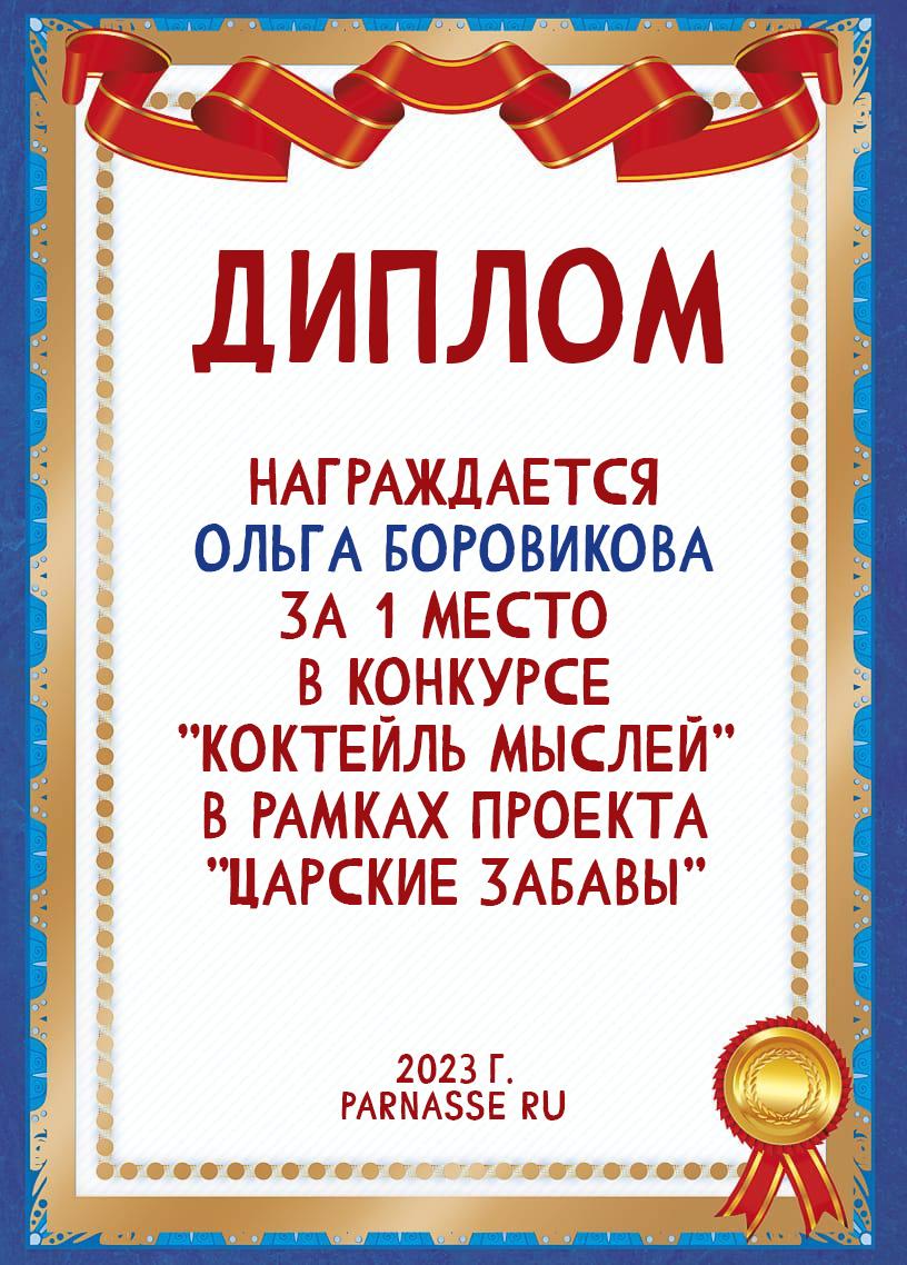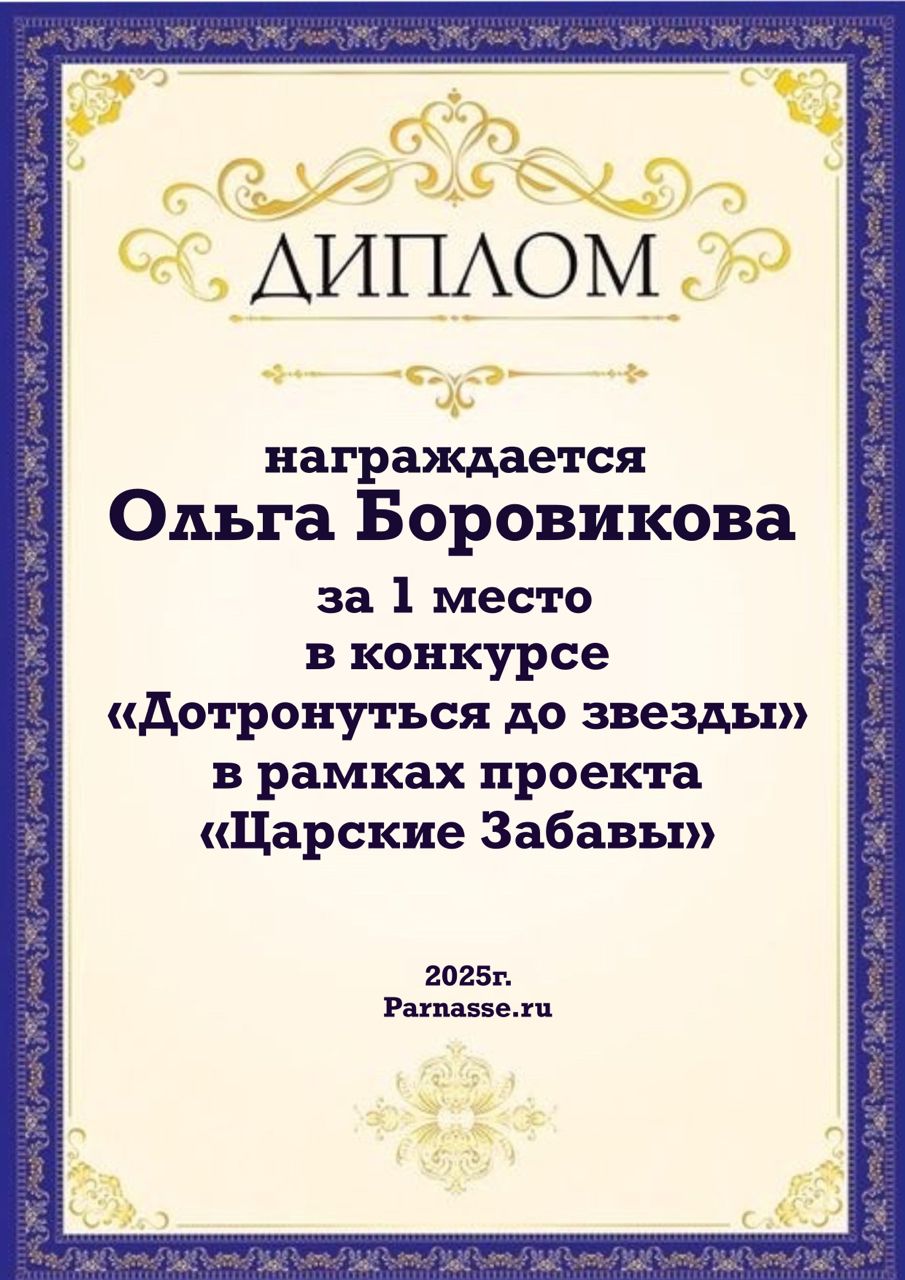 Диплом за 1 место в праздничном конкурсе "Поздравим Парнас с трёхлетием вместе!"