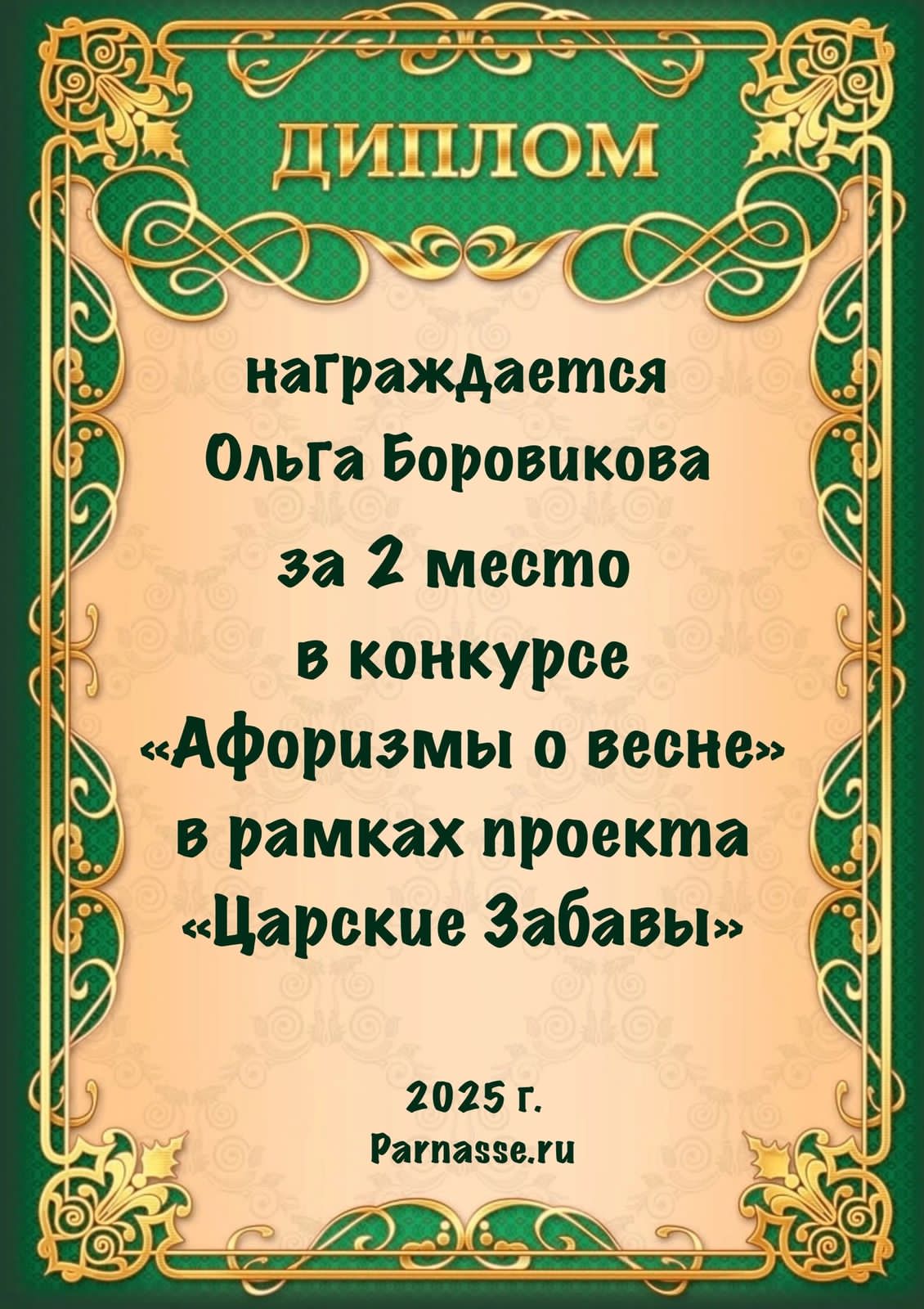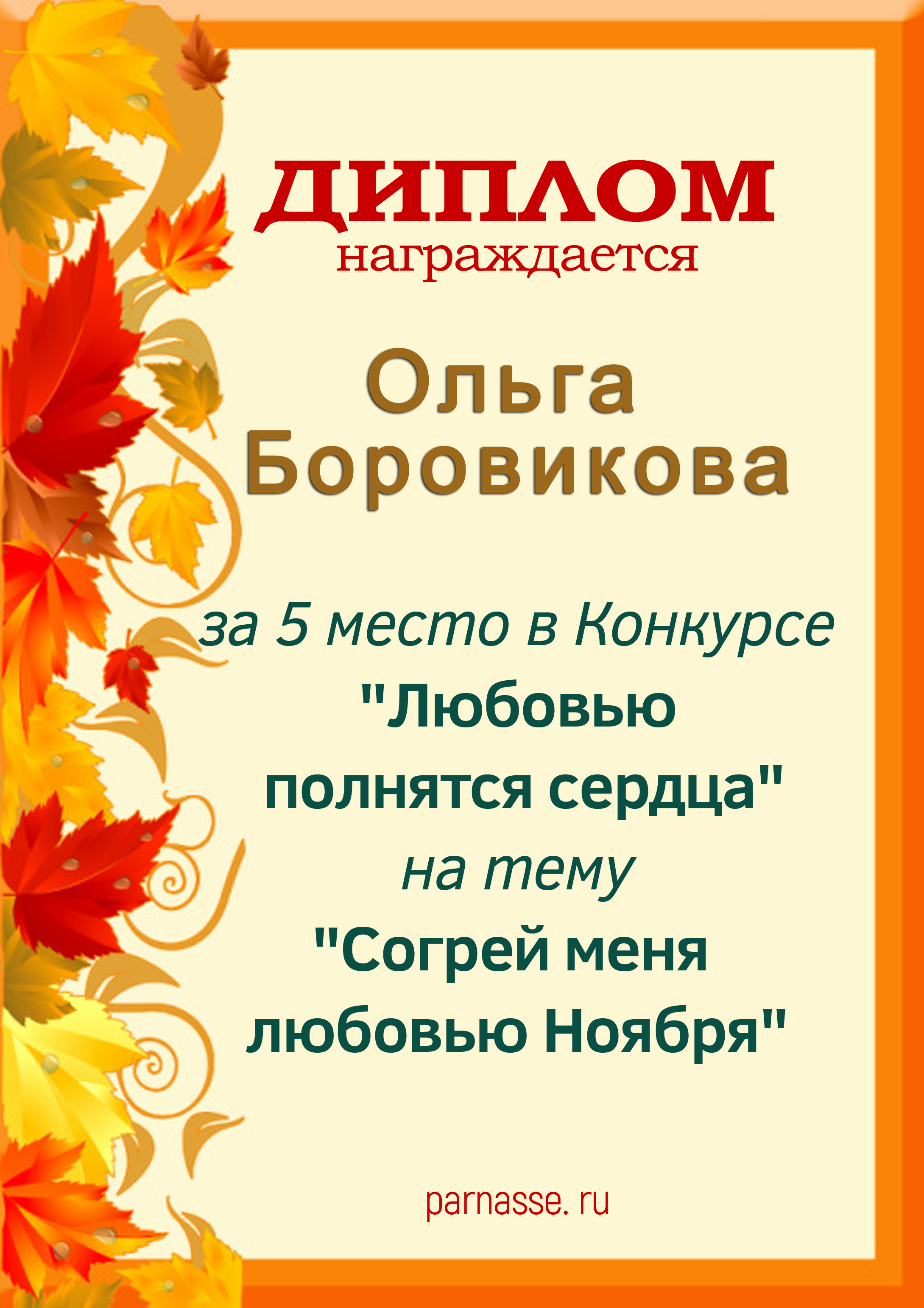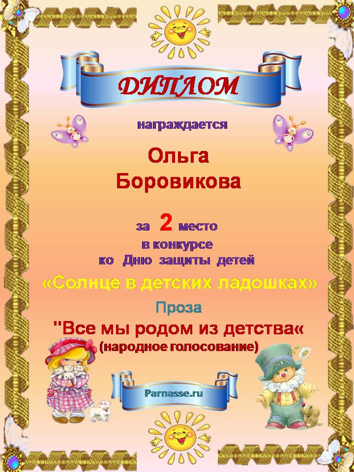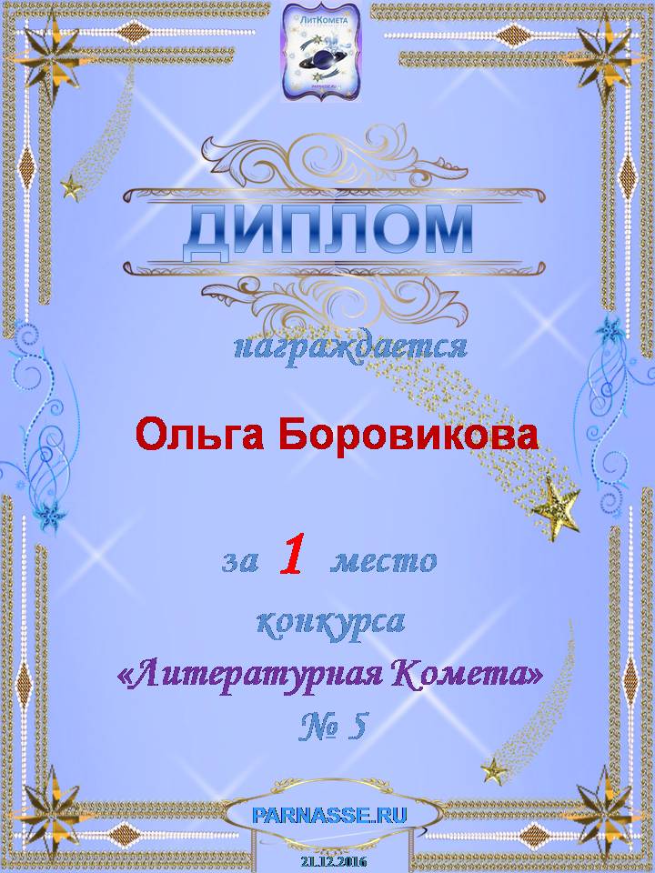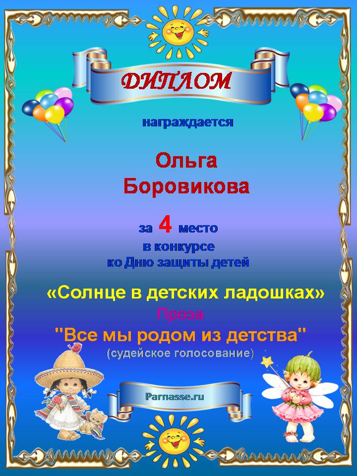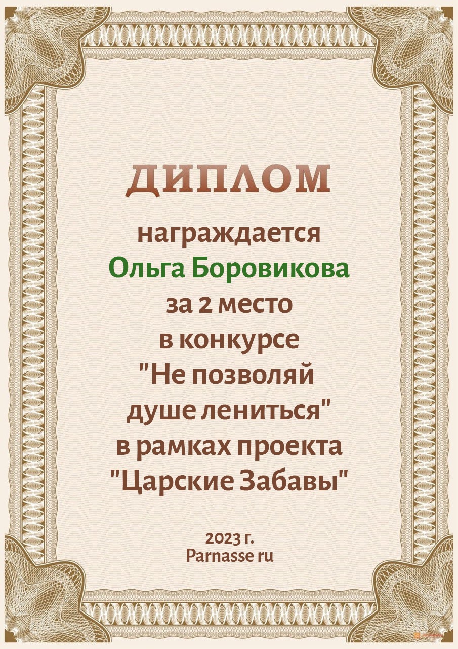 Диплом за 1 место в праздничном конкурсе "Поздравим Парнас с трёхлетием вместе!"