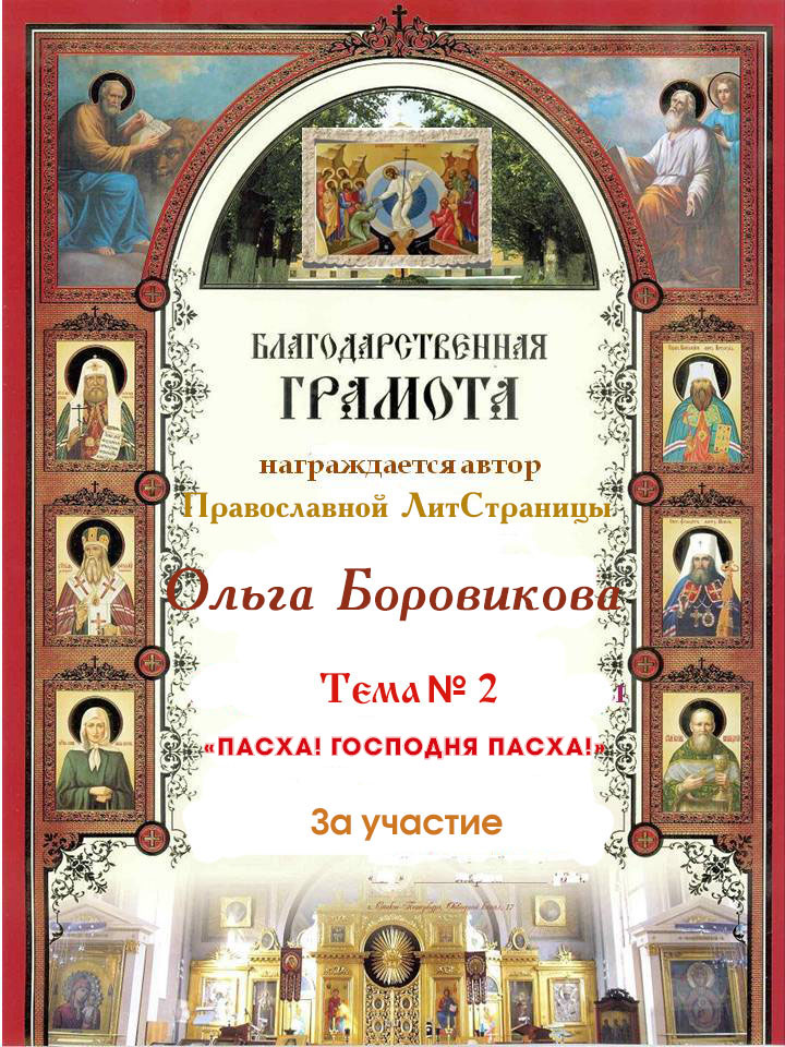 Православная ЛитСтраница. Тема № 2 "Пасха! Господня Пасха!" Номинация: Поэзия (женская).