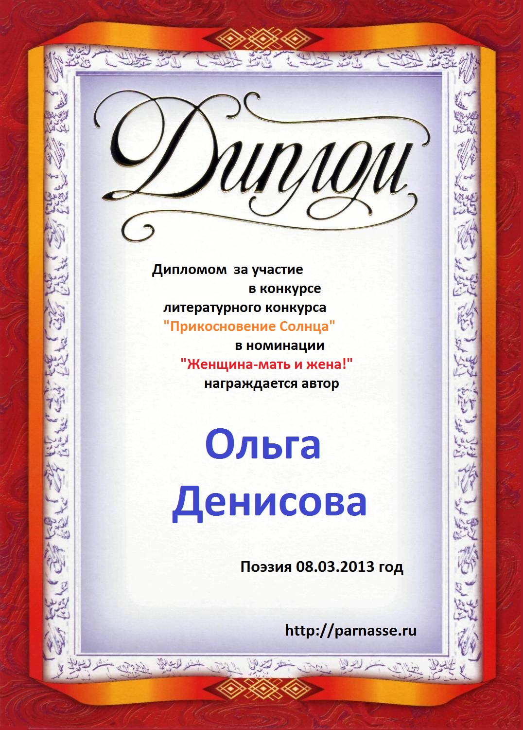 Диплом в конкурсе поэзии "Прикосновение Солнца"