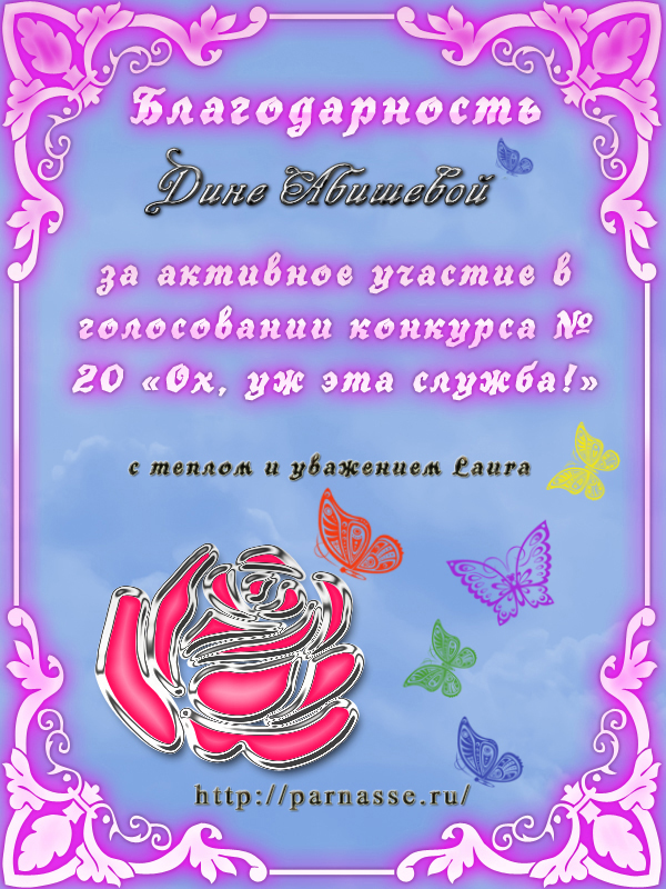 За безграничное доверие и уважение Авторов! За проявленные качества Лидера и вклад в развитие сайта "Парнас"!
