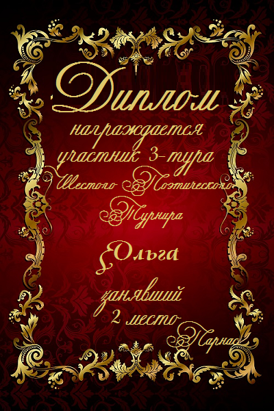 Второе место в судейском голосовании по итогам 3-го тура Шестого поэтического Турнира
