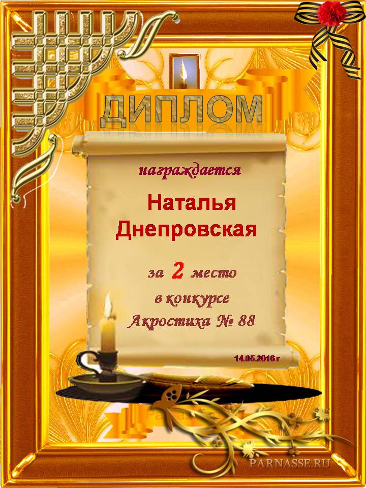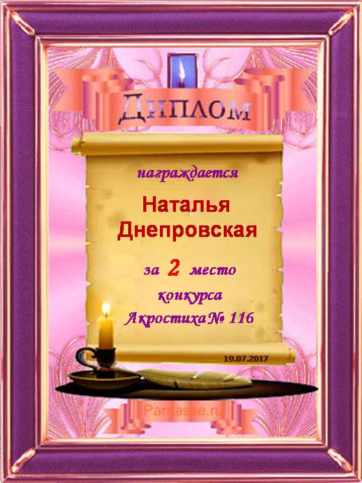 Диплом за 3 место в 119 конкурсе АКРОСТИХА (Альтернатива)! ПОЗДРАВЛЯЮ!