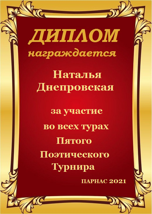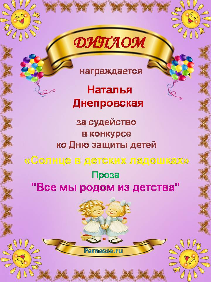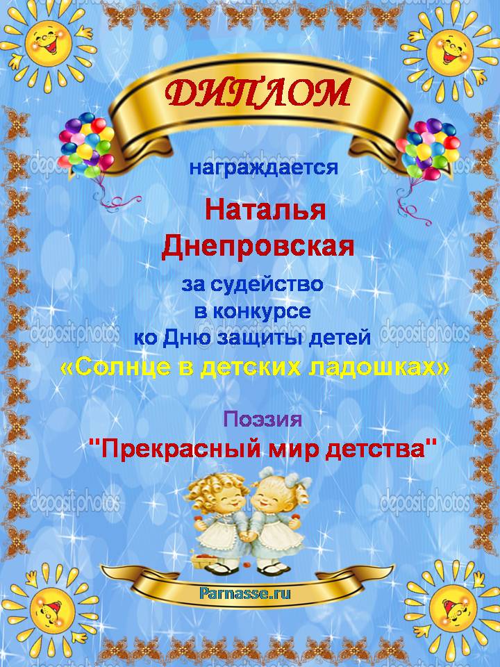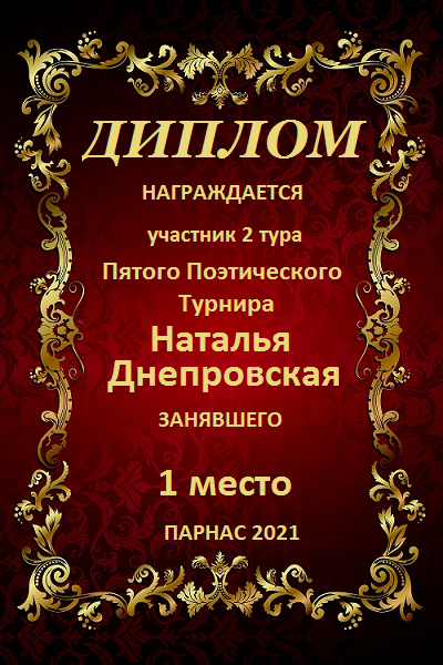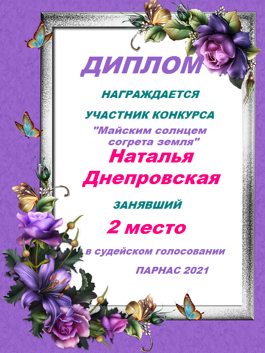 Диплом в конкурсе поэзии "Прикосновение Солнца"