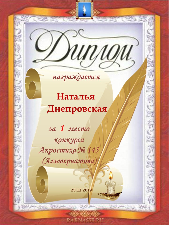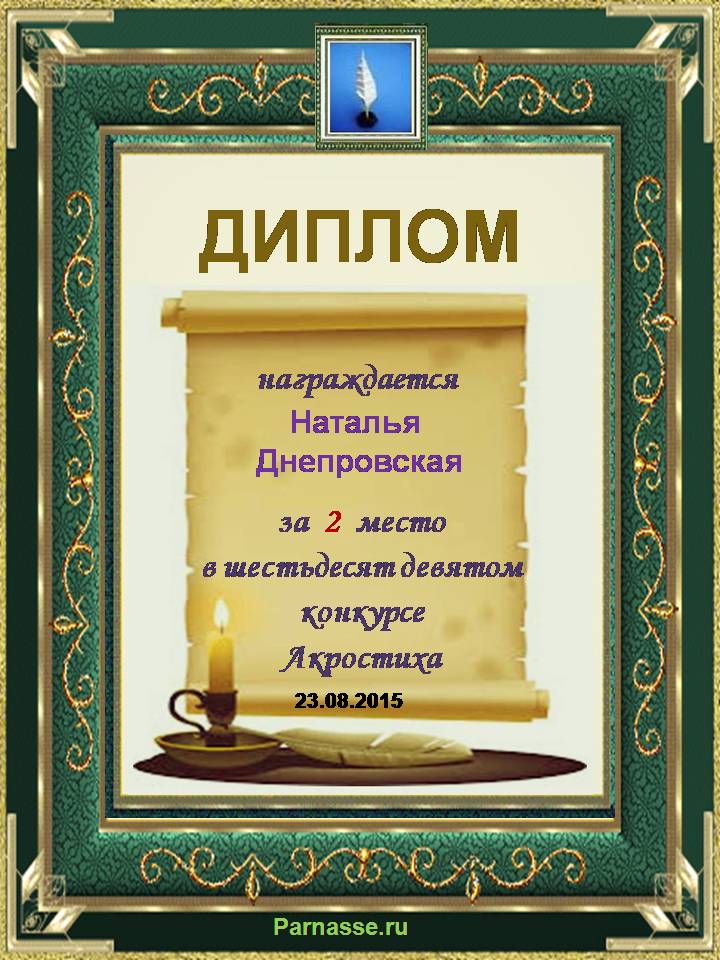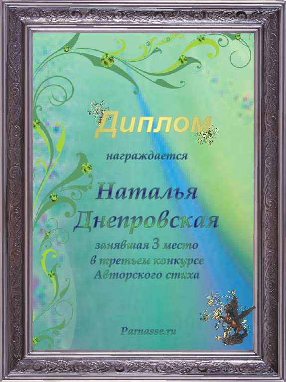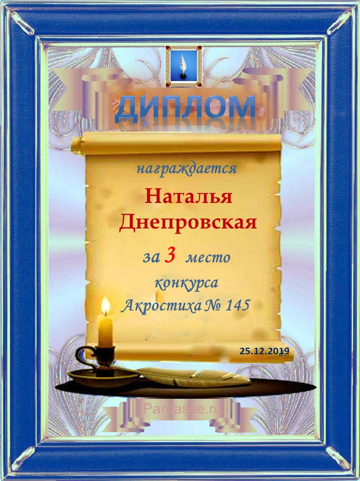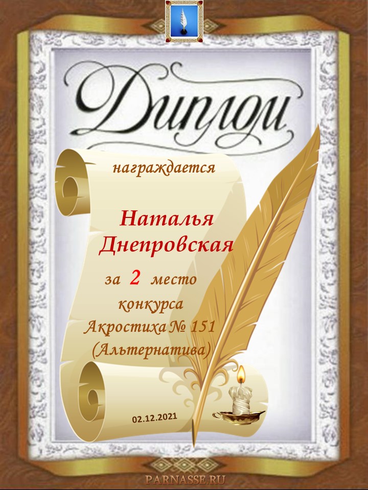 Диплом за 3 место в 137 конкурсе АКРОСТИХА (Альтернатива)! ПОЗДРАВЛЯЮ!