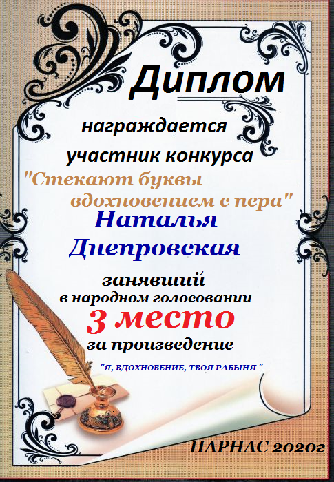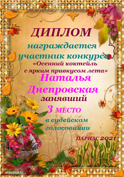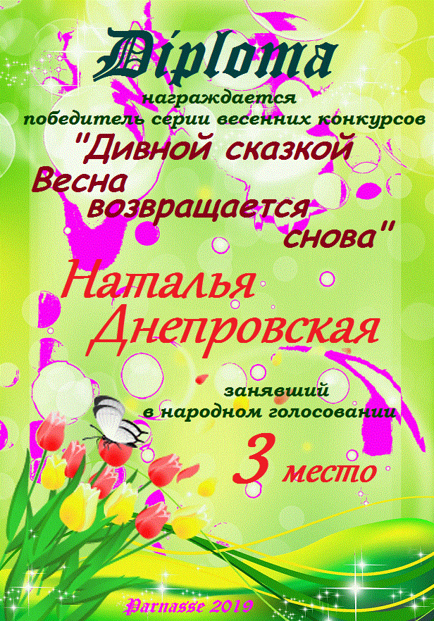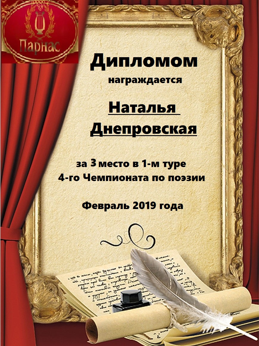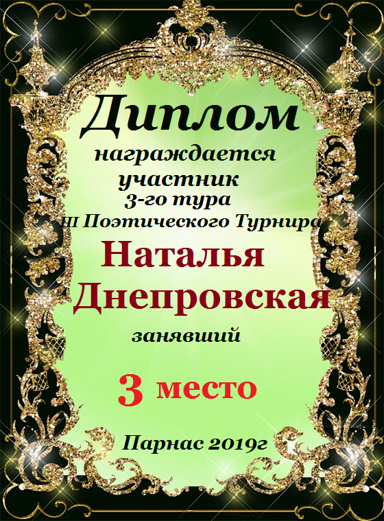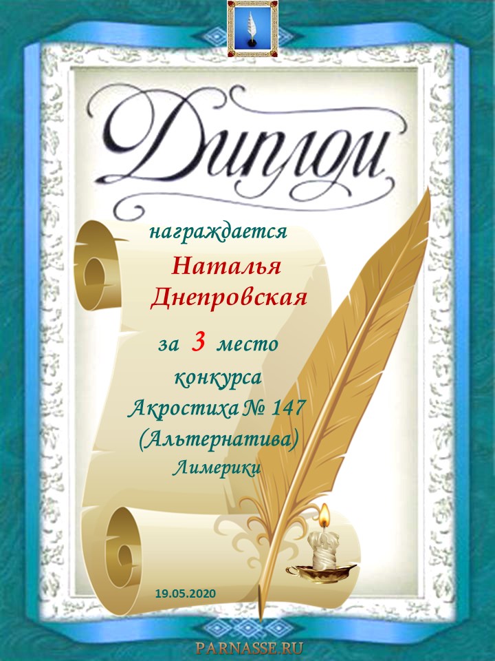 Диплом за 3 место в 137 конкурсе АКРОСТИХА (Альтернатива)! ПОЗДРАВЛЯЮ!