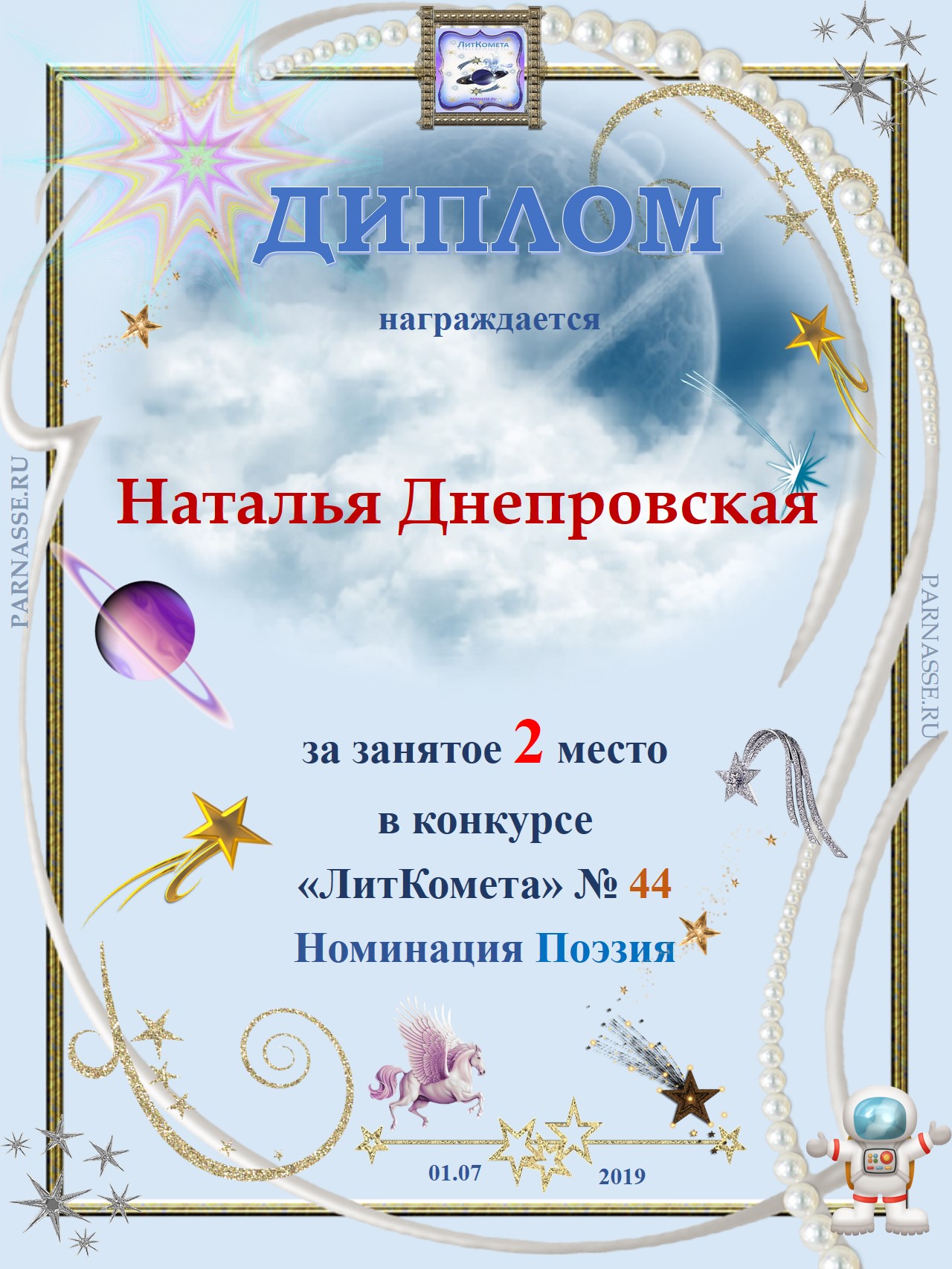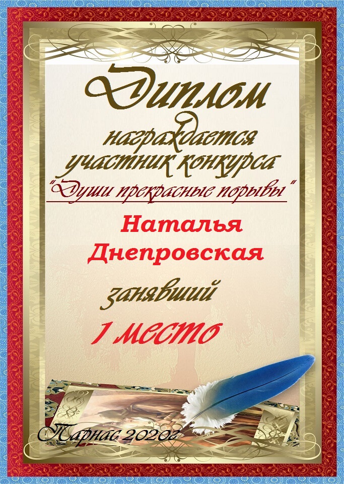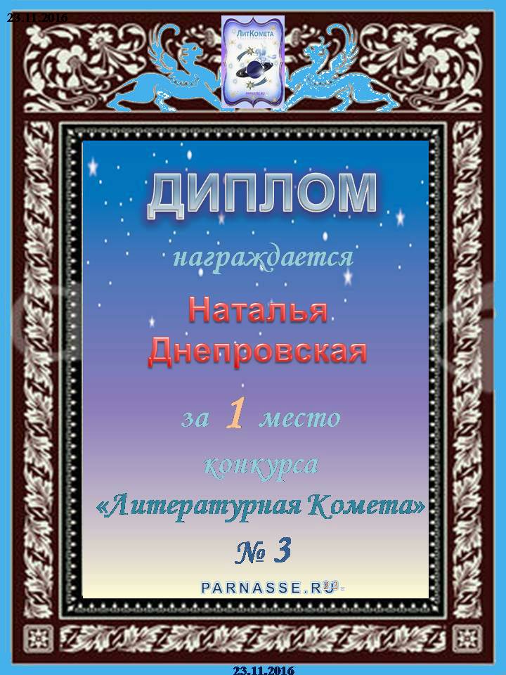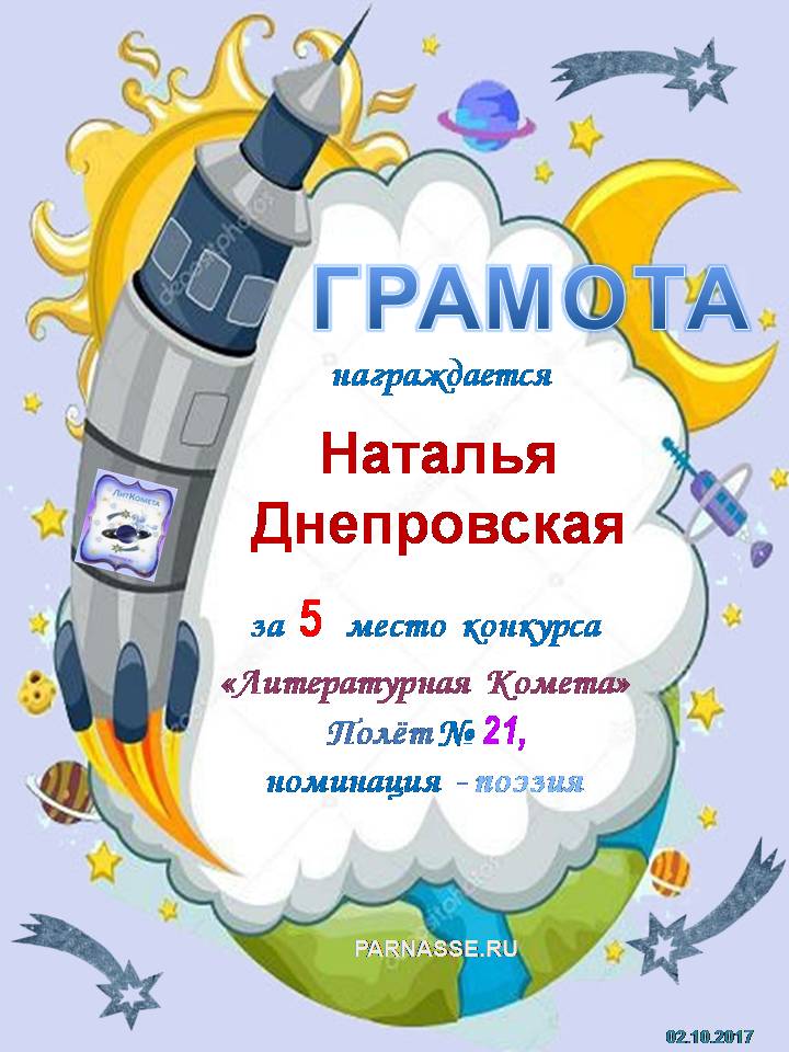 Поздравляю с занятым 1 местом в конкурсе «Литературная Комета – Полёт № 35» - номинация поэзия!